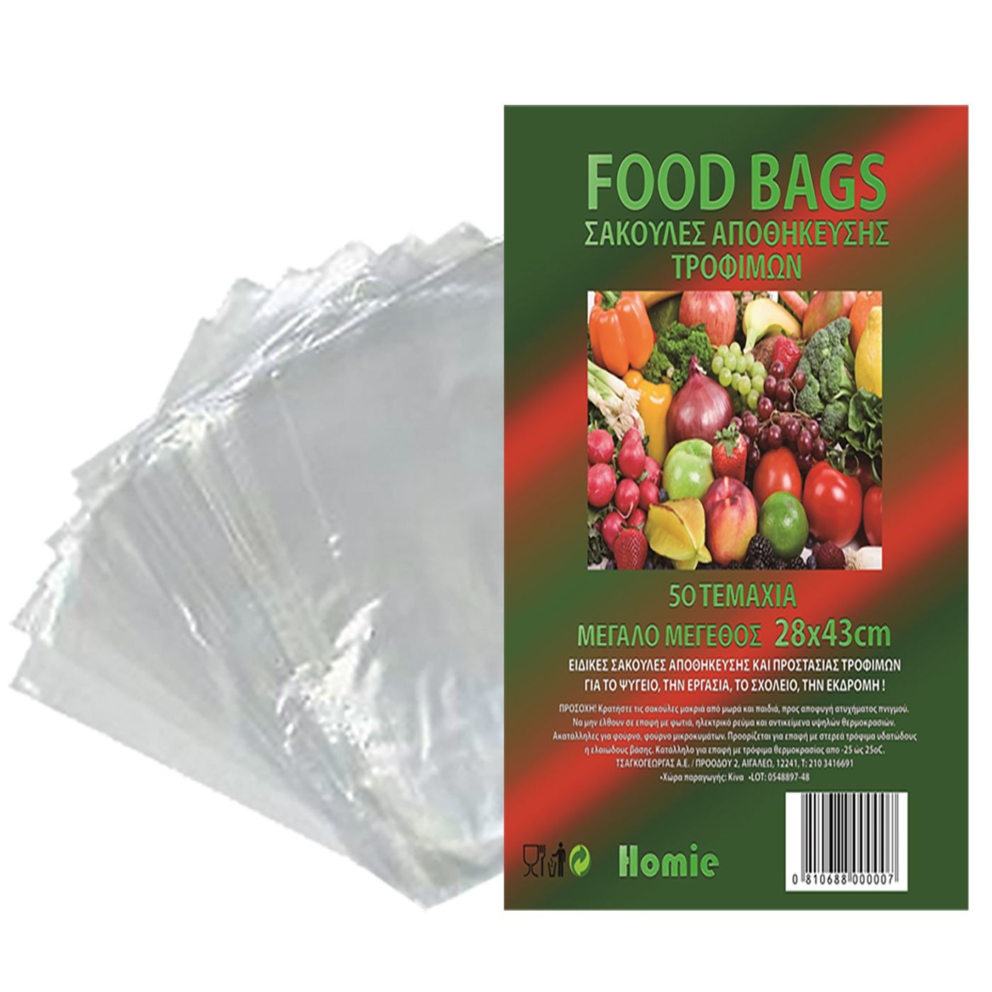 Σακούλες Τροφίμων Μεγάλες πακ=50τεμ 43x28cm Homie 101708 Πακ=50τεμ σακούλες τροφίμων 43x28cm