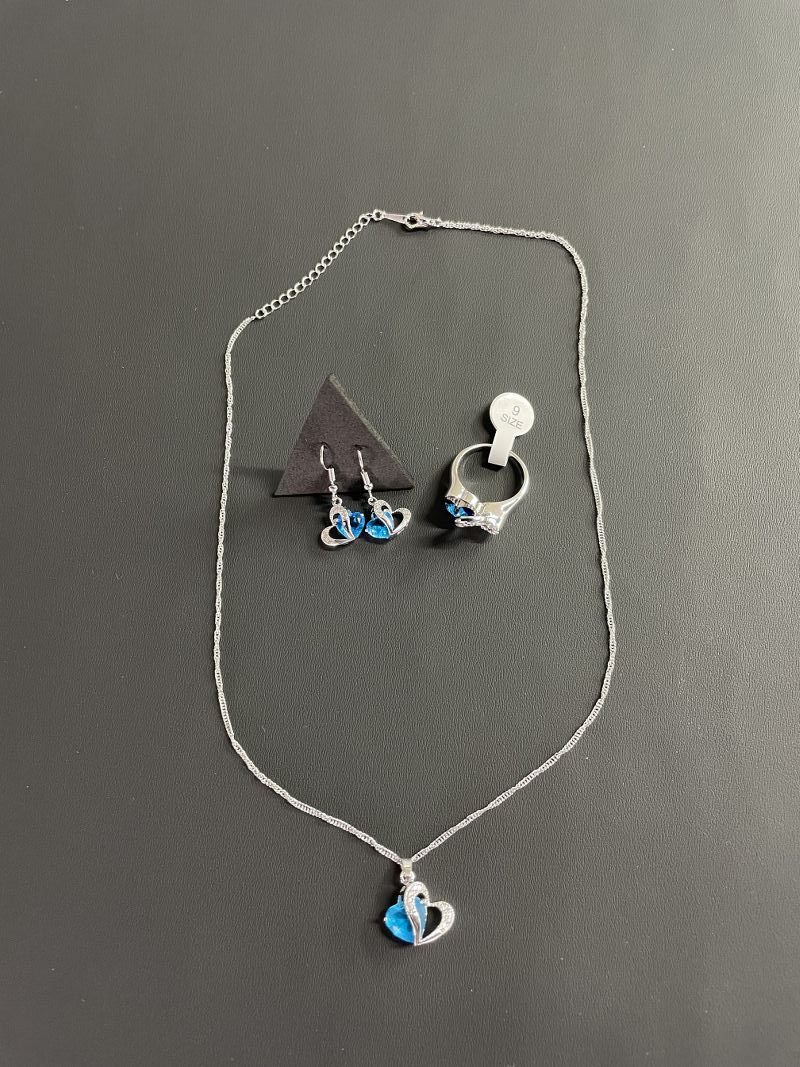 ΣΕΤ ΚΟΣΜΗΜΑΤΩΝ ΓΑΜΟΥ ΜΕΝΤΑΓΙΟΝ,ΔΑΧΤΥΛΙΔΙ & ΣΚΟΥΛΑΡΙΚΙΑ ΚΑΡΔΙΑ ΜΕ ΜΠΛΕ ΠΕΤΡΑ