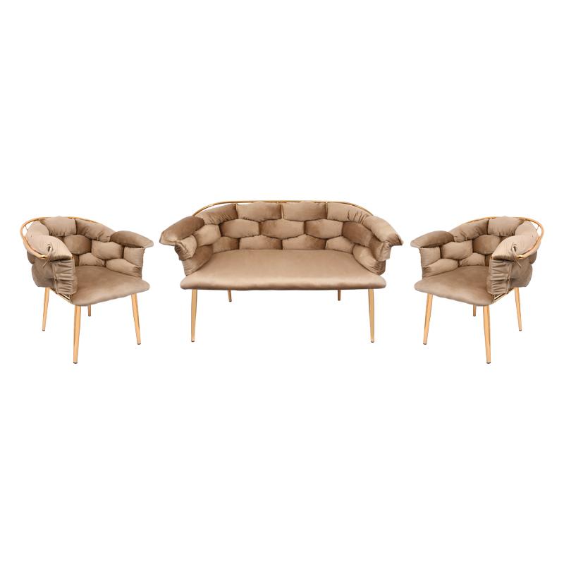 ΣΕΤ ΣΑΛΟΝΙ 3 ΤΕΜΑΧΙΩΝ Fylliana Baloon ΜΕ ΜΕΤΑΛΛΙΚΟ ΣΚΕΛΕΤΟ ΚΑΙ ΜΠΕΖ ΧΡΩΜΑ ΥΦΑΣΜΑΤΟΣ