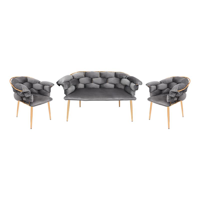ΣΕΤ ΣΑΛΟΝΙ 3 ΤΕΜΑΧΙΩΝ Fylliana Baloon ΜΕ ΜΕΤΑΛΛΙΚΟ ΣΚΕΛΕΤΟ ΚΑΙ ΓΚΡΙ ΧΡΩΜΑ ΥΦΑΣΜΑΤΟΣ