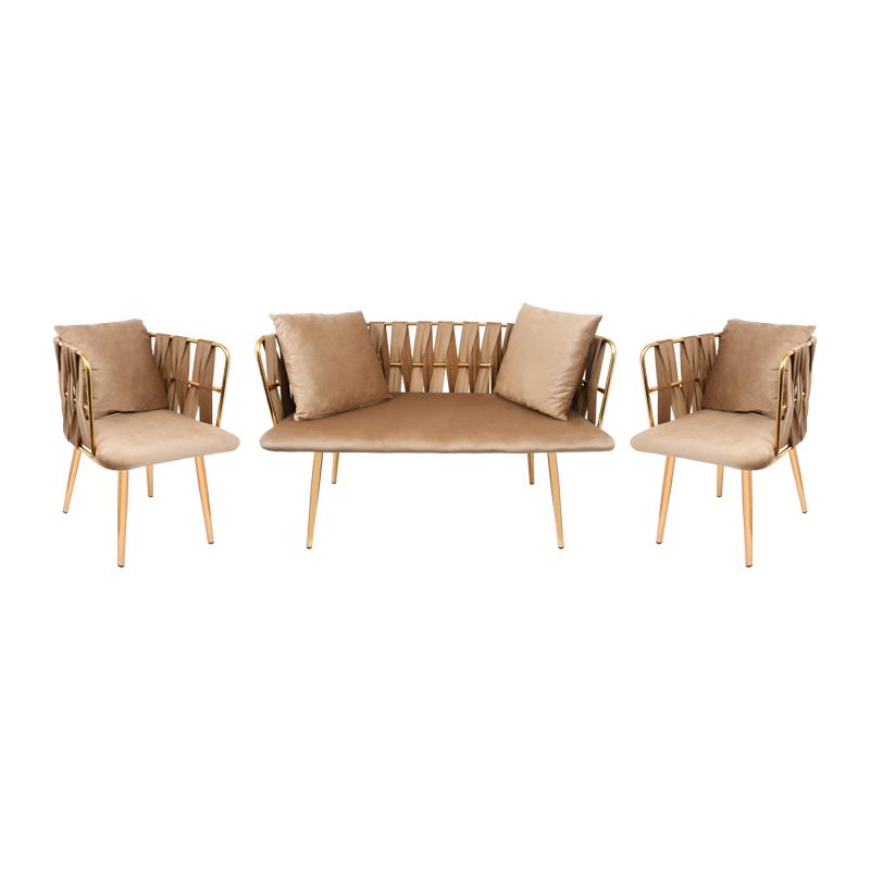 ΣΕΤ ΣΑΛΟΝΙ 3 ΤΕΜΑΧΙΩΝ Fylliana Belt ΜΕ ΜΕΤΑΛΛΙΚΟ ΣΚΕΛΕΤΟ ΚΑΙ ΜΠΕΖ ΧΡΩΜΑ ΥΦΑΣΜΑΤΟΣ