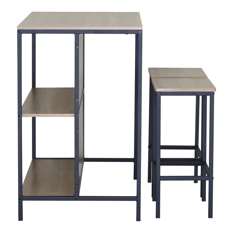 Σετ τραπέζι μπαρ Bailon pakoworld με ράφια σε oak απόχρωση με μαύρο μέταλλο 100x60x95εκ Αναζητάτε ένα τραπέζι μπαρ για την κουζίνα, την τραπεζαρία ή τον επαγγελματικό σας χώρο που θα εντυπωσιάσει με τον μοντέρνο και κομψό σχεδιασμό του; Αν ναι, τότε το Bailon είναι ιδανικό για σας!Τεχνικά χαρακτηριστικά: Κατασκευασμένh επιφάνεια από μοριοσανίδα υψηλής ανθεκτικότητας με επένδυση μελαμίνης. Ο σκελετός είναι κατασκευασμένος από μέταλλο υψηλής ποιότητας σε μαύρο χρώμα. Φέρει πρακτικά ράφια στην πλαϊνή πλευρά παρέχουν επιπλέον αποθηκευτικό χώρο για μπουκάλια, ποτήρια ή διακοσμητικά στοιχεία, βοηθώντας σας να διατηρείτε τον χώρο σας οργανωμένο. Προσφέρεται σε oak χρώμα με μαύρο μέταλλο.Διαστάσεις τραπεζιού μπαρ: Μήκος: 100 εκ Πλάτος: 60 εκ Ύψος: 95 εκΔιάσταση σκαμπό μπαρ: 40x30x65εκ.Πληροφορίες υλικών Μοριοσανίδα: Η μοριοσανίδα, γνωστή ως Novopan, είναι ένα σύνθετο ξύλινο υλικό που κατασκευάζεται από μικρά κομματάκια ξύλου, συνήθως πεύκου ή ελάτης, κολλημένα μαζί υπό υψηλή πίεση και θερμοκρασία με τη χρήση ρητινών. Χρησιμοποιείται ευρέως στην κατασκευή επίπλων, εσωτερικών επιφανειών και δομικών εφαρμογών. Κατασκευάζεται από ανακυκλωμένα υλικά και είναι ανθεκτική σε καμπύλες, τριβές και άλλες φυσικές καταπονήσεις. Μελαμίνη: Η μελαμίνη LPB (Low Pressure Melamine) είναι ένα συνθετικό υλικό που χρησιμοποιείται ευρέως στην επιφανειακή επεξεργασία μοριοσανίδας στην κατασκευή επίπλων και επιφανειών, λόγω της ανθεκτικότητάς της και της ευκολίας στη συντήρηση.Εφαρμόζεται σε υποστρώματα όπως το MDF ή το κόντρα πλακέ OSB για να παράγει ανθεκτικές επιφάνειες. Μέταλλο: Τα μέταλλα χρησιμοποιούνται ευρέως στην κατασκευή επίπλων, προσφέροντας μια σειρά από πλεονεκτήματα σε σχέση με άλλα υλικά. είναι εξαιρετικά ανθεκτικά σε φθορές, ιδανικά για έπιπλα που προορίζονται για έντονη χρήση ή σε απαιτητικά περιβάλλοντα. Διατηρούν το σχήμα και τη δομή τους άψογα, εξασφαλίζοντας σταθερότητα και μακροζωία στα έπιπλα.Εκτός από τις ιδιότητες που αναφέρθηκαν παραπάνω, τα μέταλλα μπορεί να έχουν και άλλα χαρακτηριστικά, όπως η αντιμικροβιακή δράση (χαλκός), η μαγνητικότητα (νικέλιο) ή η υπεραγωγιμότητα (μολυβδένιο).Οδηγίες συντήρησης υλικών Μοριοσανίδα: Για τον καθαρισμό της μοριοσανίδας, μπορείτε να χρησιμοποιήσετε ένα μαλακό πανί ελαφρά εμποτισμένο με νερό και ήπιο απορρυπαντικό. Αποφύγετε την υπερβολική χρήση νερού και διατηρήστε την επιφάνεια στεγνή μετά τον καθαρισμό. Μελαμίνη: Ένα από τα πιο γνωστά υλικά στον χώρο του επίπλου είναι η μελαμίνη. Για να αφαιρέσετε τους λεκέδες από την επιφάνειά χρησιμοποιείστε ένα μαλακό πανί με χλιαρό νερό και ήπιο σαπούνι. Σκουπίστε απαλά την επιφάνεια μέχρι να αφαιρεθεί ο λεκές. Η μελαμίνη είναι ευαίσθητη στην υγρασία, επομένως είναι σημαντικό να την προστατεύετε από το νερό. Μέταλλο: Εάν πρόκειται για οποιοδήποτε μέταλλο εσωτερικού χώρου, ένα ξεσκόνισμα ή ένα καθάρισμα με υγρό πανί σε τακτά χρονικά διαστήματα είναι η ενδεδειγμένη επιλογή.Παρατηρήσεις: Το προϊόν παραδίδεται σε εργοστασιακή συσκευασία και με αναλυτικό οδηγό συναρμολόγησης. Η χρωματική απόχρωση του προϊόντος ενδέχεται να διαφέρει ελαφρώς σε σχέση με την φωτογραφική απεικόνισή του στην οθόνη σας.