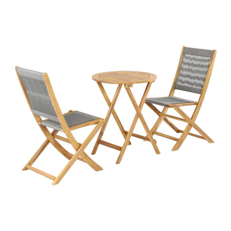 ΣΕΤ BISTRO 3 ΤΕΜ ΞΥΛΟ ΑΚΑΚΙΑΣ Fylliana FL3709 ΚΑΡΥΔΙ ΣΚΕΛΕΤΟΣ-ΓΚΡΙ ΚΟΡΔΟΝΙ 60x60x75εκ –