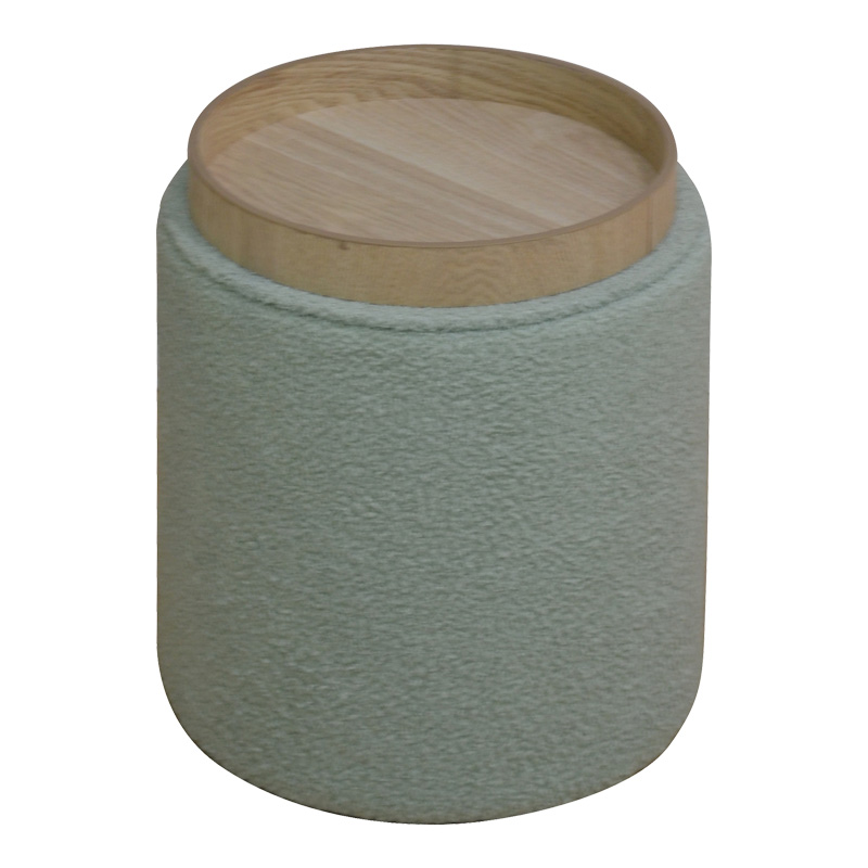 Σκαμπό-μπαούλο Batur pakoworld μπουκλέ ύφασμα σε χακί απόχρωση Φ34×38εκ