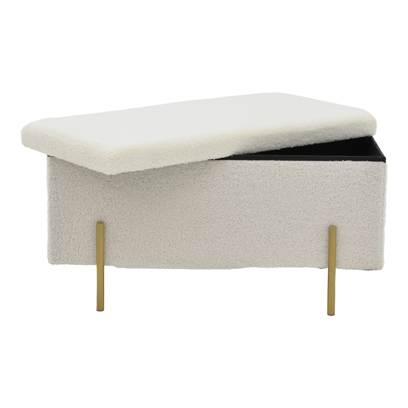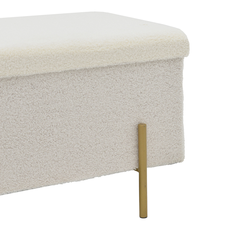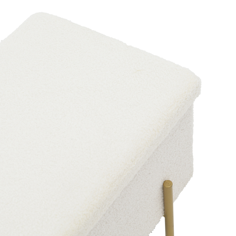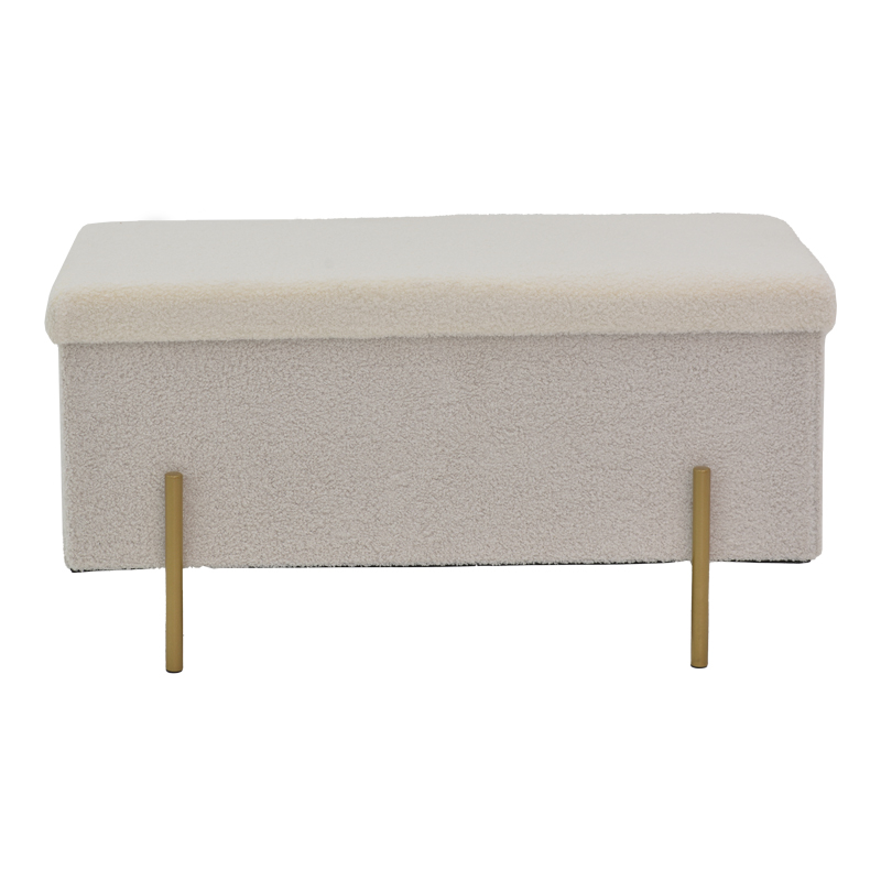 Σκαμπό-μπαούλο Ziwel pakoworld μπουκλέ λευκό-χρυσό 80x40x40εκ Σκαμπό-μπαούλο Ziwel pakoworld μπουκλέ λευκό-χρυσό 80x40x40εκΨάχνετε ένα σκαμπό λιτού σχεδιασμού που θα αναδείξει τη διακόσμηση του χώρου σας; Το Ziwel είναι το ιδανικό για εσάς καθώς συνδυάζει ποιότητα κι αισθητική.Τεχνικά χαρακτηριστικά:* Κατασκευασμένο με υλικό mdf και foam υψηλής ανθεκτικότητας.* Επένδυση μπουκλέ υφάσματος εξαιρετικής ποιότητας σε λευκό χρώμα.* Διαθέτει αποθηκευτικό χώρο για τα αντικείμενά σας.* Στήριξη σε μεταλλικά τέσσερα πόδια υψηλής αντοχής σε χρώμα χρυσό.Διαστάσεις προϊόντος:Μήκος: 80 εκ.Πλάτος: 80 εκ.Ύψος: 40 εκ.Παρατηρήσεις:Το προϊόν παραδίδεται σε εργοστασιακή συσκευασία.Η χρωματική απόχρωση του προϊόντος ενδέχεται να διαφέρει ελαφρώς σε σχέση με την φωτογραφική απεικόνισή του στην οθόνη σας.
