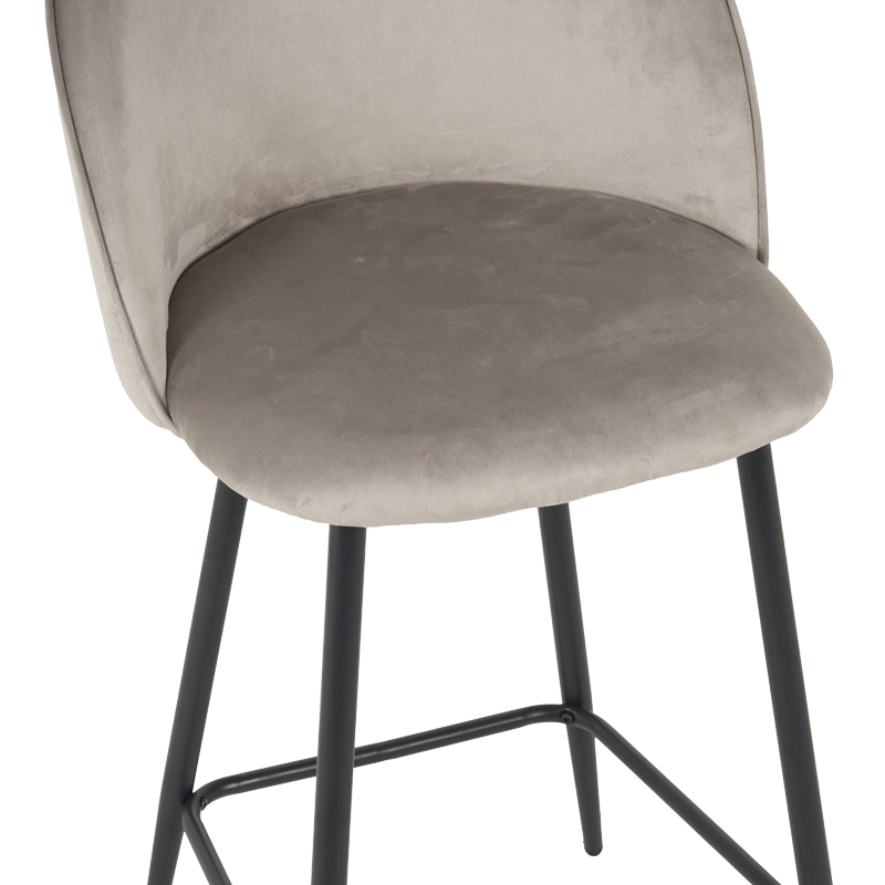 Σκαμπό μπαρ μεσαίου ύψους Perch pakoworld βελούδο σε γκρί απόχρωση με μαύρα μεταλλικά πόδια 50x43x99εκ