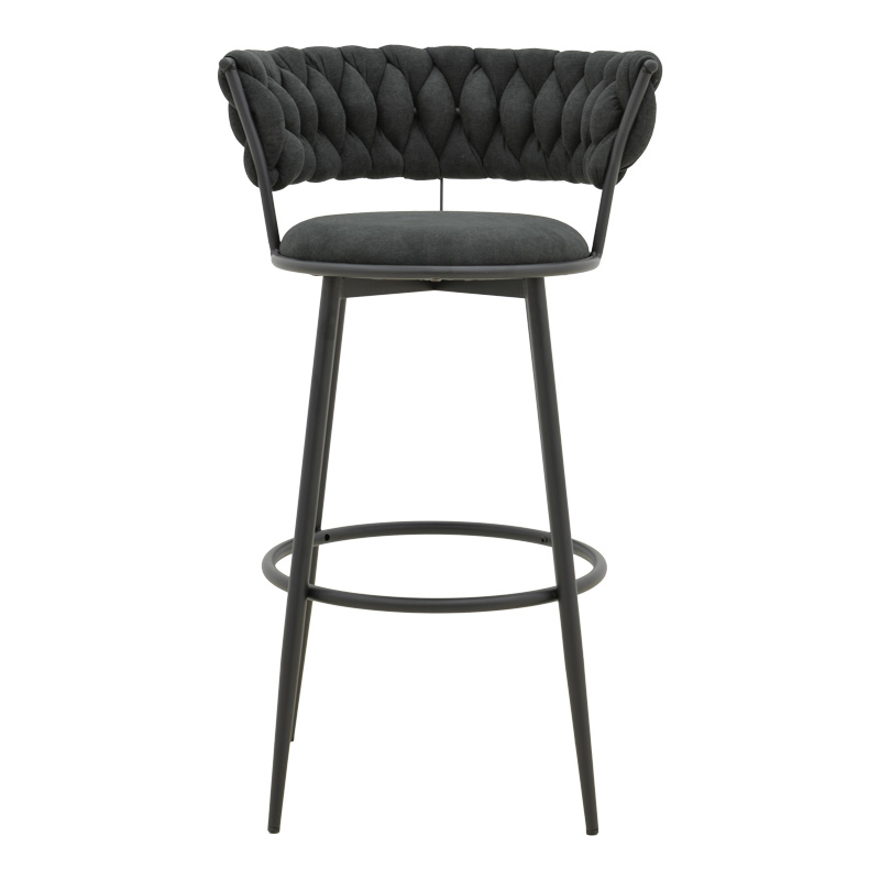 Σκαμπό μπαρ Alkia I pakoworld ύφασμα σε μαύρη απόχρωση- πόδι μαύρο μέταλλο 50x56x95εκ Αναβαθμίστε τον χώρο σας με το σκαμπό μπαρ Alkia, έναν συνδυασμό κομψότητας και άνεσης. Η χαρακτηριστική πλέξη στο πίσω μέρος προσθέτει μια ενδιαφέρουσα και οπτική γοητεία, ενώ το άνετο κάθισμα υπόσχεται ευχάριστες στιγμές χαλάρωσης. Στηριγμένο σε λεπτά, αλλά σταθερά μεταλλικά πόδια σε μαύρο ματ φινίρισμα, το σκαμπό μπαρ Alkia διαθέτει επίσης ένα πρακτικό στήριγμα ποδιών για επιπλέον άνεση. Είτε πρόκειται για ένα μοντέρνο μπαρ στο σπίτι είτε για έναν πολυσύχναστο επαγγελματικό χώρο, το σκαμπό μπαρ Alkia υπόσχεται να προσθέσει στυλ και άνεση σε κάθε περίσταση.Τεχνικά χαρακτηριστικά: Πλάτη και έδρα επενδεδυμένες με foam υψηλής ανθεκτικότητας και αντοχών στη φθορά. Στήριξη σε μεταλλικό σκελετό που καταλήγει σε 4 πόδια εξαιρετικής ποιότητας και αντοχής σε μαύρο χρώμα. Επένδυση με ύφασμα ασυναγώνιστης ποιότητας, χρώμα: μαύρο Οι καταλήξεις των ποδιών διαθέτουν προστατευτικά καλύμματα για την προστασία του πατώματος από ανεπιθύμητες φθορές. προσφέρει μια αίσθηση διαχρονικής φινέτσας ιδανικό για μπαρ, πάγκους και ψηλά τραπέζια, για οικιακούς αλλά και επαγγελματικούς χώρους.Διάσταση προϊόντος: Μήκος: 50 εκ. Πλάτος: 56 εκ. Ύψος: 95 εκ. Ύψος έδρας: 75 εκ.Παρατηρήσεις: Το προϊόν παραδίδεται αμοντάριστο, σε εργοστασιακή συσκευασία και με αναλυτικό οδηγό συναρμολόγησης. Η χρωματική απόχρωση του προϊόντος ενδέχεται να διαφέρει ελαφρώς σε σχέση με την φωτογραφική απεικόνισή του στην οθόνη σας