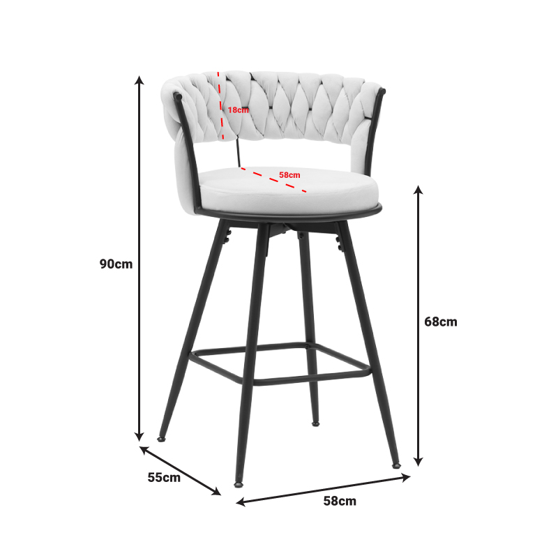 Σκαμπό μπαρ Alkia pakoworld περιστρεφόμενο σε μπεζ βελούδο με μαύρα πόδια μέταλλο 58x55x90εκ Το σκαμπό μπαρ Alkia είναι μια εξαιρετική επιλογή για όσους αναζητούν ένα κομψό και λειτουργικό έπιπλο που θα αναβαθμίσει την αισθητική του χώρου τους. Ο συνδυασμός του μοντέρνου σχεδιασμού με τις κλασικές πινελιές την καθιστά μια διαχρονική επιλογή που θα ταιριάξει σε κάθε στυλ διακόσμησης. Κατάλληλη για οικιακή χρήση σε μπαρ, κουζίνες και τραπεζαρίες, ιδανική για επαγγελματικούς χώρους όπως εστιατόρια, καφέ και μπαρ. Τεχνικά χαρακτηριστικά: Πλάτη και έδρα επενδεδυμένα με foam υψηλής ανθεκτικότητας. Διαθέτει περιστρεφόμενο κάθισμα 360΄. Προσφέρει εξαιρετική στήριξη στη μέση με τον καμπύλο σχεδιασμό. Στήριξη σε μεταλλικό σκελετό εξαιρετικής ποιότητας και αντοχής σε μαύρο χρώμα. Επένδυση με μπεζ βελούδο ασυναγώνιστης ποιότητας. Οι καταλήξεις των ποδιών διαθέτουν προστατευτικά καλύμματα για την προστασία του πατώματος από ανεπιθύμητες φθορές.Διάσταση προϊόντος: Μήκος: 58 εκ. Πλάτος: 55 εκ. Ύψος: 90 εκ. Ύψος καθίσματος: 68 εκ Πλάτος καθίσματος: 58 εκ Ύψος πλάτης: 18 εκ Μέγιστο βάρος: 120 κιλάΠληροφορίες υλικών: Velvet – Βελούδο: Το βελούδο είναι ένα ύφασμα με κοντές, πυκνές ίνες, συνήθως από μετάξι, βαμβάκι ή συνθετικά υλικά. Έχει μια απαλή, λεία υφή και μια πλούσια, γυαλιστερή εμφάνιση. Χαρακτηρίζεται για την πυκνότητα του και την απαλότητά του. Μέταλλο: Το μέταλλο χρησιμοποιείται ευρέως στην κατασκευή επίπλων, προσφέροντας μια σειρά από πλεονεκτήματα σε σχέση με άλλα υλικά. Είναι εξαιρετικά ανθεκτικό σε φθορές, ιδανικό για έπιπλα που προορίζονται για καθημερινή χρήση σε ένα απαιτητικό περιβάλλον. Διατηρεί το σχήμα και τη δομή του άψογα, εξασφαλίζοντας σταθερότητα και μακροζωία στα έπιπλα. Εκτός από τις ιδιότητες που αναφέρθηκαν παραπάνω, το μέταλλο μπορεί να έχει και άλλα χαρακτηριστικά, όπως η αντιμικροβιακή δράση (χαλκός) ή υπεραγωγιμότητα (μολυβδένιο).Συντήρηση υλικων: Βελούδο: Χρησιμοποιείστε μία μαλακή βούρτσα, ή την ηλεκτρική σας σκούπα και το εξάρτημα με την μαλακή τρίχα και με απαλές κινήσεις καθαρίστε το βελούδο. Σε περίπτωση λεκέ σκουπίστε με ένα μαλακό πανί και χλιαρό νερό, αλλά τρίψτε πολύ απαλά το λεκέ χωρίς να ασκείτε πίεση γιατί θα ποτίσει ακόμα πιο βαθιά. Ξεπλύνετε καλά την περιοχή με καθαρό νερό και αφήστε το ύφασμα να στεγνώσει μακριά από τον ήλιο. Μέταλλο: Εάν πρόκειται για οποιοδήποτε μέταλλο εσωτερικού χώρου, ένα ξεσκόνισμα ή ένα καθάρισμα με υγρό πανί σε τακτά χρονικά διαστήματα είναι η ενδεδειγμένη επιλογή.Παρατηρήσεις: Το προϊόν παραδίδεται αμοντάριστο, σε εργοστασιακή συσκευασία και με αναλυτικό οδηγό συναρμολόγησης. Η χρωματική απόχρωση του προϊόντος ενδέχεται να διαφέρει ελαφρώς σε σχέση με την φωτογραφική απεικόνισή του στην οθόνη σας.