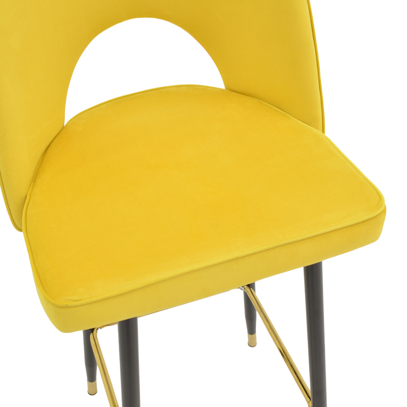 Σκαμπό μπαρ Casenio pakoworld κίτρινο βελούδο-πόδι μαύρο με χρυσό μέταλλο 48x50x117εκ Για εσάς που αναζητάτε ένα μοντέρνο σκαμπό μπαρ με εντυπωσιακό design που να μπορεί να σταθεί αρμονικά σε οποιοδήποτε χώρο του σπιτιού ή του επαγγελματικού σας χώρου, το μοντέλο Casenio είναι η επιλογή σας. Ο σχεδιασμός του σε συνδυασμό με την υψηλή ποιότητα κατασκευής και την ανθεκτικότητα του, το καθιστούν αναγκαίο για τον εξοπλισμό κάθε χώρου. Ιδανικό για: Καταστήματα, καφετέριες, ξενοδοχεία, εκθεσιακούς χώρους καθώς και σε κάθε μοντέρνο σπίτι.Τεχνικά χαρακτηριστικά: Πλάτη και έδρα ενιαία, κατασκευασμένες από ενισχυμένο μεταλλικό σκελετό και επενδυμένες με βελούδο ύφασμα υψηλής ποιότητας και αντοχής. Προσφέρεται σε χρώμα κίτρινο-μαύρο-χρυσό. Ο σχεδιασμός της καμπύλης πλάτης ακολουθεί την σπονδυλική στήλη, στηρίζοντας τη μέση. Η στήριξη πραγματοποιείται σε ενισχυμένο μεταλλικό σκελετό σε μαύρο-χρυσό χρώμα. Φέρει ειδικό υποπόδιο στήριξης των ποδιών. Οι καταλήξεις των ποδιών στήριξης διαθέτουν πλαστικά καλύμματα για την προστασία του πατώματος από ανεπιθύμητες φθορές.Διαστάσεις προϊόντος: Μήκος: 48 εκ. Πλάτος: 50 εκ. Ύψος: 117 εκ. Υψος έδρας: 75 εκ. Βάθος έδρας: 48 εκ. Υψος πλάτης: 33 εκ. Βάρος αντοχής: 150 kg.Πληροφορίες υλικών: Βελούδο ύφασμα: Το βελούδο είναι ένα ύφασμα με κοντές, πυκνές ίνες, συνήθως από μετάξι, βαμβάκι ή συνθετικά υλικά. Έχει μια απαλή, λεία υφή και μια πλούσια, γυαλιστερή εμφάνιση. Χαρακτηρίζεται για την πυκνότητα του και την απαλότητά του. Μέταλλο: Το μέταλλο χρησιμοποιείται ευρέως στην κατασκευή επίπλων, προσφέροντας μια σειρά από πλεονεκτήματα σε σχέση με άλλα υλικά. Είναι εξαιρετικά ανθεκτικό σε φθορές, ιδανικό για έπιπλα που προορίζονται για καθημερινή χρήση σε ένα απαιτητικό περιβάλλον. Διατηρεί το σχήμα και τη δομή του άψογα, εξασφαλίζοντας σταθερότητα και μακροζωία στα έπιπλα. Εκτός από τις ιδιότητες που αναφέρθηκαν παραπάνω, το μέταλλο μπορεί να έχει και άλλα χαρακτηριστικά, όπως η αντιμικροβιακή δράση (χαλκός) ή υπεραγωγιμότητα (μολυβδένιο).Οδηγίες συντήρησης: Βελούδο ύφασμα: Χρησιμοποιείστε μία μαλακή βούρτσα, ή την ηλεκτρική σας σκούπα και το εξάρτημα με την μαλακή τρίχα και με απαλές κινήσεις καθαρίστε το βελούδο. Σε περίπτωση λεκέ σκουπίστε με ένα μαλακό πανί και χλιαρό νερό, αλλά τρίψτε πολύ απαλά το λεκέ χωρίς να ασκείτε πίεση γιατί θα ποτίσει ακόμα πιο βαθιά. Ξεπλύνετε καλά την περιοχή με καθαρό νερό και αφήστε το ύφασμα να στεγνώσει μακριά από τον ήλιο. Μέταλλο: Εάν πρόκειται για οποιοδήποτε μέταλλο εσωτερικού χώρου, ένα ξεσκόνισμα ή ένα καθάρισμα με υγρό πανί σε τακτά χρονικά διαστήματα είναι η ενδεδειγμένη επιλογή.Παρατηρήσεις: Το προϊόν παραδίδεται αμοντάριστο, σε εργοστασιακή συσκευασία και με αναλυτικό οδηγό συναρμολόγησης. Η χρωματική απόχρωση του προϊόντος ενδέχεται να διαφέρει ελαφρώς σε σχέση με την φωτογραφική απεικόνισή του στην οθόνη σας.