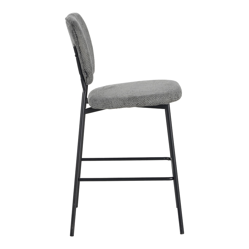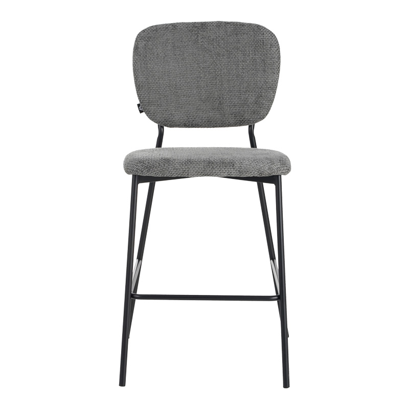 Σκαμπό μπαρ Cathair pakoworld μπουκλέ ύφασμα σε γκρι απόχρωση με μαύρα μεταλλικά πόδια 48x54x100εκ