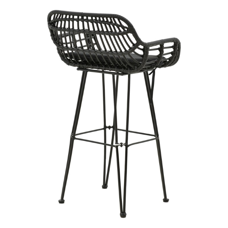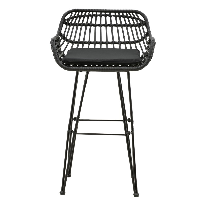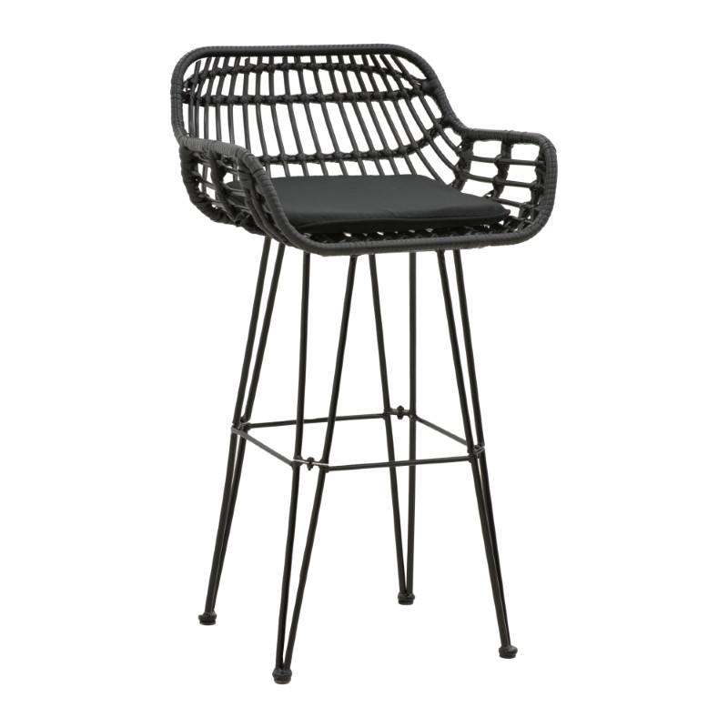 Σκαμπό μπαρ Naoki pakoworld με μαξιλάρι pe μαύρο-μέταλλο μαύρο πόδι 52x50x90εκ Σκαμπό μπαρ κήπου Naoki pakoworld με μαξιλάρι pe μαύρο-μέταλλο μαύρο πόδι 52x50x90εκΓια εσάς που ψάχνετε ένα σκαμπό μπαρ κήπου που να προσφέρει έναν υπέροχο χώρο χαλάρωσης και ηρεμίας στον κήπο, τη βεράντα ή τον μπαλκόνι σας, επιτρέποντάς σας να απολαύσετε τον εξωτερικό σας χώρο με άνεση και στυλ, η σειρά Naoki είναι ό,τι χρειάζεστε.Τεχνικά χαρακτηριστικά: Σταθερός σκελετός από εξαιρετικής ποιότητας μέταλλο με αντοχή στην καταπόνηση και στη φθορά. Κυρίως επιφάνεια καρέκλας από PE rattan. Το PE rattan είναι ένα είδος οικολογικού συνθετικού rattan, ανακυκλώσιμο και με μεγαλύτερη ανθεκτικότητα σε σχέση με τα άλλα είδη. Φέρει μαξιλαράκι για την έδρα του καθίσματος σε μαύρο χρώμα το οποίο διαθέτει φερμουάρ. Μεγάλη ανθεκτικότητα: κατάλληλο για χρήση και σε εξωτερικό χώρο εκτεθειμένο στις καιρικές συνθήκες και την υγρασία. Οι καταλήξεις των ποδιών στήριξης διαθέτουν πλαστικά καλύμματα για την προστασία του πατώματος από ανεπιθύμητες φθορές. Προσφέρεται σε χρώμα μαύρο.Διάσταση προϊόντος: Μήκος: 52 εκ. Πλάτος: 50 εκ. Ύψος: 90 εκ. Yψος έδρας: 69 εκ. Βάρος αντοχής: 100 kg.Πληροφορίες υλικών: PE Rattan: Είναι ένα δημοφιλές υλικό, απομίμηση φυσικού rattan, που χρησιμοποιείται στην κατασκευή επίπλων και αξεσουάρ. Κατασκευάζεται από πολυαιθυλένιο (polyethylene), το οποίο είναι μια ανθεκτική συνθετική πολυμερής ρητίνη. Είναι ανθεκτικό στις καιρικές συνθήκες, δεν φθείρεται από τον ήλιο ή τη βροχή και δεν ξεθωριάζει, ενώ παράλληλα είναι φιλικό προς το περιβάλλον. Μέταλλο: Το μέταλλο χρησιμοποιείται ευρέως στην κατασκευή επίπλων, προσφέροντας μια σειρά από πλεονεκτήματα σε σχέση με άλλα υλικά. Είναι εξαιρετικά ανθεκτικό σε φθορές, ιδανικό για έπιπλα που προορίζονται για καθημερινή χρήση σε ένα απαιτητικό περιβάλλον. Διατηρεί το σχήμα και τη δομή του άψογα, εξασφαλίζοντας σταθερότητα και μακροζωία στα έπιπλα. Εκτός από τις ιδιότητες που αναφέρθηκαν παραπάνω, το μέταλλο μπορεί να έχει και άλλα χαρακτηριστικά, όπως η αντιμικροβιακή δράση (χαλκός) ή υπεραγωγιμότητα (μολυβδένιο). Ύφασμα μαξιλαριού: Το ύφασμα είναι ένα ευέλικτο υλικό που κατασκευάζεται από την ύφανση, πλέξιμο, βελονιά ή συγκόλληση ινών. Αυτές οι ίνες μπορεί να είναι φυσικές, όπως βαμβάκι, μαλλί ή μετάξι, ή συνθετικές, όπως πολυεστέρας ή νάιλον. Η ύφανση των ινών δημιουργεί ένα δίκτυο που δίνει στο ύφασμα τις ιδιότητές του, όπως η αντοχή, η απαλότητα, η διαπνοή και η ελαστικότητα. Υπάρχουν άπειρες ποικιλίες υφασμάτων, καθεμιά με τα δικά της μοναδικά χαρακτηριστικά και χρήσεις.Οδηγίες συντήρησης: PE Rattan: Είναι εύκολο στη συντήρηση και τον καθαρισμό, απαιτεί απλό πλύσιμο με νερό και σαπούνι. Μέταλλο: Εάν πρόκειται για οποιοδήποτε μέταλλο εσωτερικού χώρου, ένα ξεσκόνισμα ή ένα καθάρισμα με υγρό πανί σε τακτά χρονικά διαστήματα είναι η ενδεδειγμένη επιλογή. Ωστόσο, εάν πρόκειται για μεταλλικά έπιπλα εξωτερικού χώρου, θα πρέπει να ακολουθήσετε τα παρακάτω βήματα: Για μεγαλύτερη διάρκεια προστασίας, περάστε τα μεταλλικά σας έπιπλα με προστατευτική κρέμα που μπορείτε να προμηθευτείτε εύκολα από εμπορικά καταστήματα. Εάν τα έπιπλά σας είναι επεξεργασμένα και βαμμένα με την μέθοδο του powder-coating (ηλεκτροστατική βαφή) τότε είναι πολύ ανθεκτικά και καθαρίζονται εύκολα με ένα υγρό πανί. Εάν τα μεταλλικά σας έπιπλα δεν έχουν ηλεκτροστατική βαφή, τότε θα πρέπει να τα προσέχετε περι