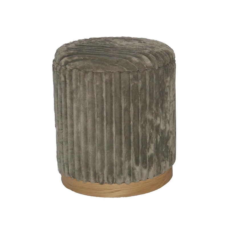 Σκαμπό Poofy Inart σετ 2 τεμ μπουκλέ ύφασμα σε γκρι και λευκή απόχρωση
