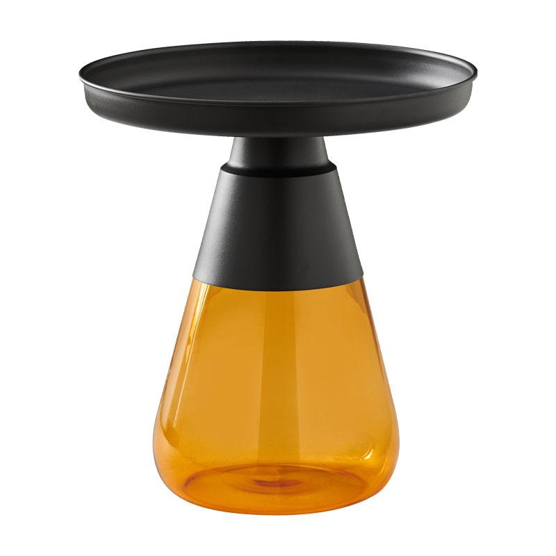 ΣΤΡΟΓΓΥΛΟ ΤΡΑΠΕΖΑΚΙ ΣΑΛΟΝΙΟΥ Fylliana FL828 ΜΕΤΑΛΛΙΚΟ ΜΕ ΓΥΑΛΙ AMBER ΧΡΩΜΑ 50×52εκ