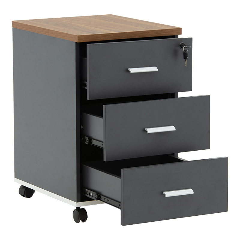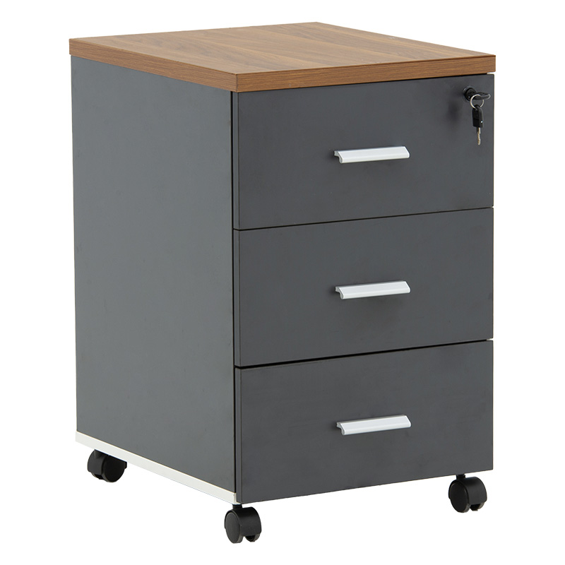 Συρταριέρα επαγγελματική τροχήλατη Oscar pakoworld 3ων συρταριών καρυδί-ανθρακί 40x48x63εκ Αναζητάς μία συρταριέρα με χώρους αποθήκευσης που να δένει αρμονικά στο χώρο εργασίας σου, καλύπτοντας παράλληλα όλες τις λειτουργικές σου ανάγκες; Αν ναι τότε η σειρά Oscar είναι αυτό που χρειάζεσαι, πρακτική και ευέλικτη θα ανανεώσει αισθητά την εικόνα της επιχείρησης σου.Τροχήλατη συρταριέρα Oscar στον εντυπωσιακό χρωματισμό του καρυδί. Κατασκευασμένη από υλικά υψηλών προδιαγραφών και σύμφωνα με τις εργονομικές απαιτήσεις του σήμερα.Τεχνικά χαρακτηριστικά: Επιφάνεια (καπάκι και βάση) κατασκευασμένη από μοριοσανίδα υψηλής ποιότητας με επένδυση μελαμίνης. Προσφέρεται στον χρωματισμό του καρυδί – ανθρακί Φέρει συρτάρια και ρόδες για την εύκολη μετακίνηση και τοποθέτηση της στην θέση που σε βολεύει (Εσωτερική διάσταση συρταριού:17,5x30x13εκ ύψος) Ο μεταλλικός χρωματισμός στα καμπύλα χερούλια, απογειώνει το τελικό αισθητικό αποτέλεσμα Συνδυάζεται αρμονικά με τα υπόλοιπα είδη της σειράς: Βιβλιοθήκες, ντουλάπια, γραφεία και τραπέζια συνεδρίουΔιάσταση προϊόντος: Μήκος σύνθεσης: 40 εκ. Πλάτος: 48 εκ. Ύψος: 63 εκ.Πληροφορίες υλικών: Μοριοσανίδα (Chipboard): Η μοριοσανίδα, γνωστή ως chipboard, είναι ένα σύνθετο ξύλινο υλικό που κατασκευάζεται από μικρά κομματάκια ξύλου, συνήθως πεύκου ή ελάτης, κολλημένα μαζί υπό υψηλή πίεση και θερμοκρασία με τη χρήση ρητινών. Χρησιμοποιείται ευρέως στην κατασκευή επίπλων, εσωτερικών επιφανειών και δομικών εφαρμογών. Κατασκευάζεται από ανακυκλωμένα υλικά και είναι ανθεκτική σε καμπύλες, τριβές και άλλες φυσικές καταπονήσεις. Μελαμίνη (LPB): Η μελαμίνη LPB (Low Pressure Melamine) είναι ένα συνθετικό υλικό που χρησιμοποιείται ευρέως στην επιφανειακή επεξεργασία μοριοσανίδας στην κατασκευή επίπλων και επιφανειών, λόγω της ανθεκτικότητάς της και της ευκολίας στη συντήρηση. Εφαρμόζεται σε υποστρώματα όπως το MDF (Medium-density fibreboard/ινοσανίδα) ή το κόντρα πλακέ OSB για να παράγει ανθεκτικές επιφάνειες. Οδηγίες συντήρησης: Μοριοσανίδα (Chipboard): Για τον καθαρισμό της μοριοσανίδας, μπορείτε να χρησιμοποιήσετε ένα μαλακό πανί ελαφρά εμποτισμένο με νερό και ήπιο απορρυπαντικό. Αποφύγετε την υπερβολική χρήση νερού και διατηρήστε την επιφάνεια στεγνή μετά τον καθαρισμό. Μελαμίνη (LPB): Για να αφαιρέσετε τους λεκέδες από την επιφάνεια χρησιμοποιείστε ένα μαλακό πανί με χλιαρό νερό και ήπιο σαπούνι. Σκουπίστε απαλά την επιφάνεια μέχρι να αφαιρεθεί ο λεκές. Η μελαμίνη είναι ευαίσθητη στην υγρασία, επομένως είναι σημαντικό να την προστατεύετε από το νερό.Παρατηρήσεις: Το προϊόν παραδίδεται αμοντάριστο, σε εργοστασιακή συσκευασία και με αναλυτικό οδηγό συναρμολόγησης. Η χρωματική απόχρωση του προϊόντος ενδέχεται να διαφέρει ελαφρώς σε σχέση με την φωτογραφική απεικόνισή του στην οθόνη σας.
