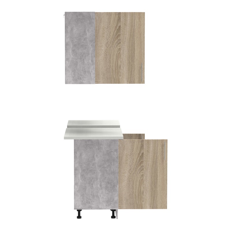 Σύνθεση κουζίνας Festa III pakoworld μελαμίνη σε sonoma απόχρωση και πάγκο σε ανοιχτό γκρι 140x60x85εκ