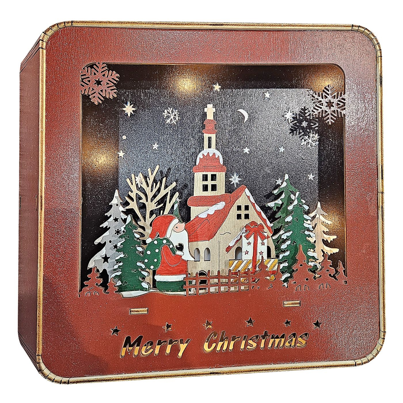 Τηλεόραση Ξύλινη με Άγιο και 5led 20x20x4,5cm Xmasfest 1133542