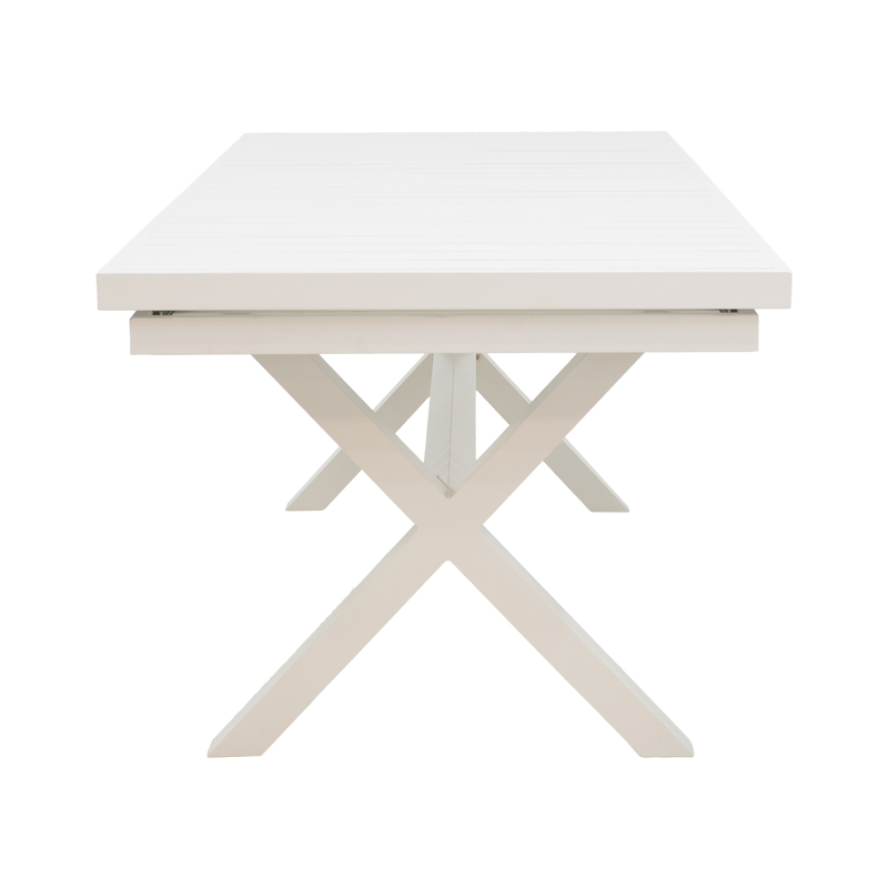 Τραπέζι επεκτεινόμενο Dagyn pakoworld λευκό αλουμίνιο 180-240x90x76εκ Για εσάς που θέλετε να αξιοποιήσετε κάθε πιθαμή του χώρου σας, το τραπέζι Dagyn με τον πολυμορφικό σχεδιασμό του είναι η ιδανική λύση. Μία ευέλικτη και λειτουργική κατασκευή, που μπορεί να χρησιμοποιηθεί όταν θέλουμε ή να μαζεύει και να πιάνει τον λιγότερο δυνατό χώρο αποθήκευσης. Τεχνικά χαρακτηριστικά: Επιφάνεια και βάση κατασκευασμένη από ενισχυμένο μέταλλο υψηλής ποιότητας, με ανθεκτικότητα στον χρόνο. Προσφέρεται σε χρώμα λευκό.Διάσταση προϊόντος: Μήκος: 180-240 εκ. Πλάτος: 90 εκ. Ύψος: 76 εκ.Πληροφορίες υλικών: Αλουμίνιο: Το υλικό ALU” αναφέρεται στο αργίλιο (Aluminum), το οποίο είναι το τρίτο πιο κοινό στοιχείο στη γη και το πρώτο πιο κοινό μέταλλο. Το αλουμίνιο δημιουργεί ένα προστατευτικό οξειδωτικό στρώμα όταν έρχεται σε επαφή με τον αέρα, προστατεύοντας από τη διάβρωση, ενώ παράλληλα είναι πλήρως ανακυκλώσιμο χωρίς να χάσει τις ιδιότητές του, κάνοντάς το ένα πολύ βιώσιμο υλικό.Οδηγίες συντήρησης: Αλουμίνιο: Χρησιμοποιείστε ένα υγρό πανί με μικροΐνες, βρεγμένο με νερό. Αν το αλουμίνιο έχει πολλά υπολείμματα, όπως σκουριά ή λεκέδες, χρησιμοποιήστε ήπιο απορρυπαντικό ή καθαριστικό για να τα απομακρύνετε.Παρατηρήσεις: Το προϊόν παραδίδεται αμοντάριστο, σε εργοστασιακή συσκευασία και με αναλυτικό οδηγό συναρμολόγησης. Η χρωματική απόχρωση του προϊόντος ενδέχεται να διαφέρει ελαφρώς σε σχέση με την φωτογραφική απεικόνισή του στην οθόνη σας.”