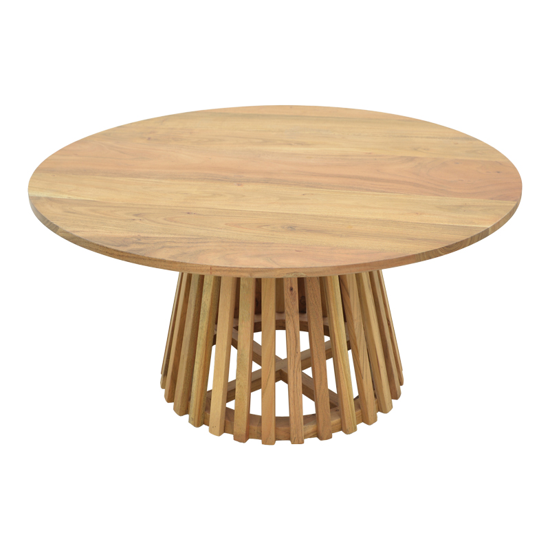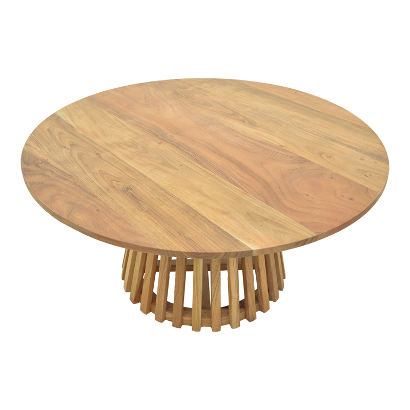 Τραπέζι σαλονιού Radiane pakoworld μασίφ ξύλο ακακίας σε φυσική απόχρωση Φ80×40εκ Ετοιμαστείτε να αναβαθμίσετε το σαλόνι ή και τον επαγγελματικό σας χώρο με ένα τραπέζι που ξεχειλίζει στυλ και ζεστασιά! Το Radiane είναι ένα έπιπλο που συνδυάζει την φυσική ομορφιά του ξύλου με ένα εντυπωσιακό, μοντέρνο design.Τεχνικά Χαρακτηριστικά: Κατασκευασμένο από μασίφ ξύλο ακακίας. Το μασίφ ξύλο ακακίας αναφέρεται στο ξύλο που προέρχεται από το δέντρο ακακίας και χρησιμοποιείται στην κατασκευή επίπλων και άλλων εφαρμογών. Φυσική Ομορφιά & Ζεστασιά: Η στρογγυλή επιφάνεια από μασίφ ξύλο, με τους ορατούς κόκκους και τις πλούσιες αποχρώσεις της, προσδίδει μια αίσθηση γαλήνης και ζεστασιάς. Είναι το τέλειο φόντο για τα αγαπημένα σας αντικείμενα ή για να απολαύσετε τις καθημερινές σας στιγμές. Μοναδική Βάση Ακτίνων”: Το πραγματικό highlight αυτού του τραπεζιού είναι η κωνική του βάση, σχηματισμένη από κάθετες ξύλινες “πλευρές” ή “ακτίνες”. Αυτό το ιδιαίτερο μοτίβο δημιουργεί ένα παιχνίδι φωτός και σκιάς, προσθέτοντας βάθος, υφή και μια μοντέρνα, αρχιτεκτονική πινελιά που το κάνει να ξεχωρίζει από οτιδήποτε άλλο. Στιβαρή Κατασκευή: Φτιαγμένο με ποιοτικά υλικά και προσοχή στην κάθε λεπτομέρεια, αυτό το τραπέζι υπόσχεται αντοχή και σταθερότητα για χρόνια χρήσης. Προσφέρεται σε χρώμα φυσικόΔιαστάσεις προϊόντος: Μήκος: 80 εκ. Πλάτος: 80 εκ. Ύψος: 40 εκ.Πληροφορίες υλικών: Ξύλο ακακίας: Το ξύλο ακακίας είναι σκληρό και ανθεκτικό στη φθορά, κάνοντάς το κατάλληλο για επίπλωση και χρήση σε εξωτερικούς χώρους. Είναι γνωστό για την ανθεκτικότητά του, την ομορφιά που προσφέρει το φυσικό του χρώμα και την αντοχή του. Χρησιμοποιείται ευρέως στην κατασκευή επίπλων, δαπέδων, επιφανειών εργασίας και εξωτερικών δομών όπως κήποι και μπαλκόνια.Οδηγίες συντήρησης: Ξύλο ακακίας: Για τη συντήρησή του, συνιστάται καθαρισμός με σαπούνι και νερό, καθώς και η τακτική εφαρμογή προϊόντων προστασίας ξύλου για να διατηρηθεί η φυσική του όψη και ανθεκτικότητα.Παρατηρήσεις: Το προϊόν παραδίδεται αμοντάριστο, σε εργοστασιακή συσκευασία και με αναλυτικό οδηγό συναρμολόγησης. Η χρωματική απόχρωση του προϊόντος ενδέχεται να διαφέρει ελαφρώς σε σχέση με την φωτογραφική απεικόνισή του στην οθόνη σας.”