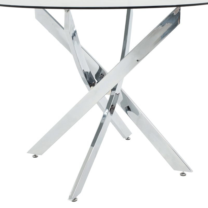 Τραπέζι Antoro pakoworld γυαλί και μεταλλικά πόδια σε απόχρωση χρωμίου Φ100×75εκ Ψάχνεις ένα τραπέζι της εποχής σου; Που να συνδυάζει γυαλί και μέταλλο, εξυψώνοντας το αφαιρετικό design και την minimal αισθητική; Αν ναι, τότε το τραπέζι Antoro είναι για σένα. Σύγχρονο, ανθεκτικό και καλαίσθητο. Ιδανικό για το σπίτι αλλά και για τον επαγγελματικό σου χώρο. Τεχνικά χαρακτηριστικά: Επιφάνεια κατασκευασμένη από διαφανές γυαλί ασυναγώνιστης ποιότητας. Στήριξη σε ενισχυμένο μεταλλικό σκελετό εξαιρετικής ποιότητας με μεγάλη αντοχή σε βάρος και φθορά. Προσφέρεται σε χρώμα χρωμίου.Διαστάσεις προϊόντος: Μήκος: 100 εκ. Πλάτος: 100 εκ. Ύψος: 75 εκ.Πληροφορίες υλικών: Γυαλί: Το γυαλί είναι ένα άμορφο, στερεό υλικό που κατασκευάζεται από τήξη άμμου (κυρίως πυριτίας), σόδας και ασβεστίου σε υψηλές θερμοκρασίες. Μπορεί να πάρει διάφορες μορφές, όπως φύλλα, σωλήνες, ράβδους και ίνες, και διαθέτει μοναδικές ιδιότητες που το καθιστούν χρήσιμο σε ποικίλες εφαρμογές. Αποτελεί ένα από τα πιο ευέλικτα και κομψά υλικά που μπορείτε να ενσωματώσετε στη διακόσμηση του σπιτιού σας. Είναι ανθεκτικό στη φθορά και στις χημικές ουσίες, καθιστώντας το κατάλληλο για χρήση σε απαιτητηκές συνθήκες. Μέταλλο: Το μέταλλο χρησιμοποιείται ευρέως στην κατασκευή επίπλων, προσφέροντας μια σειρά από πλεονεκτήματα σε σχέση με άλλα υλικά. Είναι εξαιρετικά ανθεκτικό σε φθορές, ιδανικό για έπιπλα που προορίζονται για καθημερινή χρήση σε ένα απαιτητικό περιβάλλον. Διατηρεί το σχήμα και τη δομή του άψογα, εξασφαλίζοντας σταθερότητα και μακροζωία στα έπιπλα. Εκτός από τις ιδιότητες που αναφέρθηκαν παραπάνω, το μέταλλο μπορεί να έχει και άλλα χαρακτηριστικά, όπως η αντιμικροβιακή δράση (χαλκός) ή υπεραγωγιμότητα (μολυβδένιο).Οδηγίες συντήρησης: Γυαλί: Αποφύγετε τα ισχυρά καθαριστικά και τα χημικά προϊόντα, καθώς μπορούν να βλάψουν την επιφάνεια του γυαλιού. Χρησιμοποιήστε ένα ήπιο υγρό σαπούνι ή ένα μείγμα από ξύδι και νερό (1:1) για αποτελεσματικό καθαρισμό. Μέταλλο: Εάν πρόκειται για οποιοδήποτε μέταλλο εσωτερικού χώρου, ένα ξεσκόνισμα ή ένα καθάρισμα με υγρό πανί σε τακτά χρονικά διαστήματα είναι η ενδεδειγμένη επιλογή.Παρατηρήσεις: Το προϊόν παραδίδεται αμοντάριστο, σε εργοστασιακή συσκευασία και με αναλυτικό οδηγό συναρμολόγησης. Η χρωματική απόχρωση του προϊόντος ενδέχεται να διαφέρει ελαφρώς σε σχέση με την φωτογραφική απεικόνισή του στην οθόνη σας.