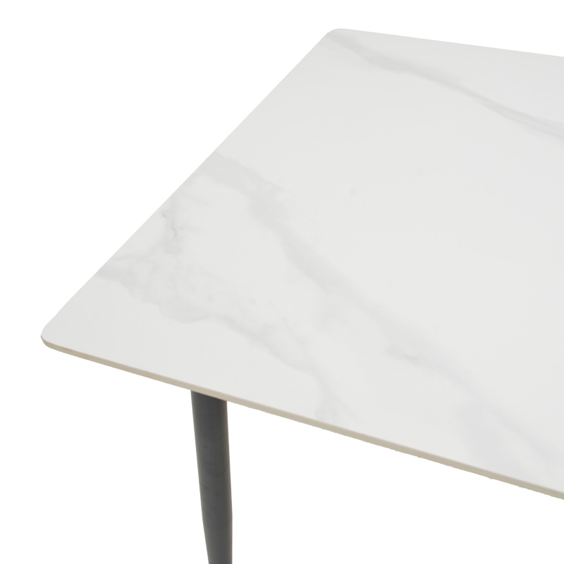 Τραπέζι Gustas pakoworld λευκό μαρμάρου sintered stone-μαύρο μέταλλο 80x80x76εκ Ένα εντυπωσιακό τραπέζι για να ολοκληρώσεις την ανανέωση της τραπεζαρίας σου, το μοντέλο αυτό με πυροσυσσωματωμένη πέτρα είναι η καλύτερη πρόταση της αγοράς καθως συνδυάζει την απλότητα με την κομψότητα, προσφέροντας μια λειτουργική και στυλάτη λύση για κάθε χώρο . Η επιφάνεια από εφέ μαρμάρου προσθέτει μια νότα πολυτέλειας, ενώ τα μεταλλικά πόδια εξασφαλίζουν σταθερότητα και ανθεκτικότητα. Ο μινιμαλιστικός σχεδιασμός του τραπεζιού το καθιστά ιδανικό για μικρούς χώρους, αλλά και για μεγαλύτερες τραπεζαρίες που αναζητούν μια σύγχρονη αισθητική.Τεχνικά χαρακτηριστικά : Επιφάνεια κατασκευασμένη από υψηλής ποιότητας Sintered stone 12mm με υψηλές αντοχές στις χαμηλές και στις υψηλές θερμοκρασίες, σε χρώμα λευκό μαρμάρου. Το sintered stone (σιντερέ λίθος) είναι ένας σύγχρονος τύπος υλικού που χρησιμοποιείται ευρέως στον τομέα της κατασκευής και του design. Είναι ένας σκληρός, ανθεκτικός και ελαφρύς υλικός, κατασκευασμένος μέσω ενός διαδικασίας που ονομάζεται σιντεροποίηση (sintering), όπου τα φυσικά υλικά όπως μεταλλικά σκόνες, ορυκτά και πορώδες υλικά συμπιέζονται και θερμαίνονται σε υψηλές θερμοκρασίες, χωρίς τη χρήση πολύ υγρών. Η επιφάνεια του είναι κατάλληλη για επαφή με τρόφiμα καθώς δεν απελευθερώνει επιβλαβείς ουσίες. Πόδια από μέταλλο σε μαύρο χρώμα. Η επιφάνεια του τραπεζιού προσαρμόζεται στο σκελετό του τραπεζιού με βεντούζες. Προσφέρεται σε χρώμα λευκό με όψη μαρμάρου.Διάσταση τραπεζιού: Μήκος: 80 εκ Πλάτος: 80 εκ Ύψος: 76 εκΠαρατηρήσεις : Το προϊόν παραδίδεται σε εργοστασιακή συσκευασία και με αναλυτικό οδηγό συναρμολόγησης. Το χρώμα του προϊόντος μπορεί να διαφέρει ελαφρώς από την εμφάνιση της φωτογραφίας στην οθόνη σας.