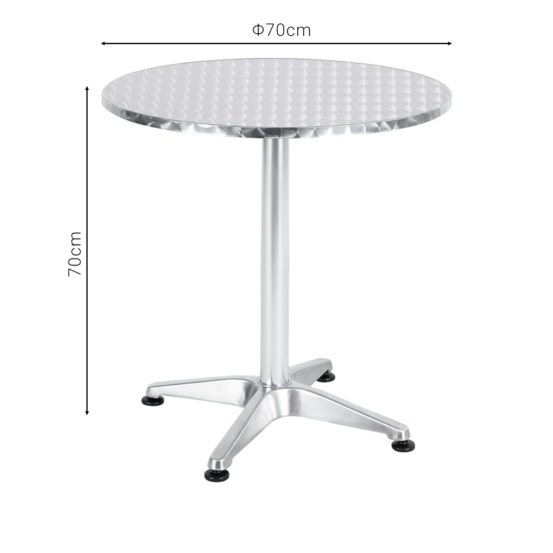 Τραπέζι Lazo pakoworld χρωμίου αλουμίνιο Φ70×70εκ Τραπέζι Lazo pakoworld χρωμίου αλουμίνιο Φ70×70εκΘέλετε ένα ανθεκτικό τραπέζι για το μπαλκόνι ή τον κήπο σας που θα αναβαθμίσει αισθητικά το χώρο σας; Το τραπέζι κήπου Lazo είναι το ιδανικό για εσάς καθώς συνδυάζει την αισθητική με την ποιότητα κατασκευής. Τεχνικά χαρακτηριστικά:* Σταθερός σκελετός από εξαιρετικής ποιότητας μέταλλο με αντοχή στην καταπόνηση και στη φθορά. * Μεγάλη ανθεκτικότητα: κατάλληλο για χρήση σε εξωτερικό χώρο εκτεθειμένο σε καιρικές συνθήκες κι υγρασία.* Προσφέρεται σε χρώμα χρωμίου.Διαστάσεις προϊόντος:Μήκος: 70 εκΠλάτος: 70 εκΎψος: 70 εκ Παρατηρήσεις:Το προϊόν παραδίδεται σε εργοστασιακή συσκευασία και με αναλυτικό οδηγό συναρμολόγησης.Η χρωματική απόχρωση του προϊόντος ενδέχεται να διαφέρει ελαφρώς σε σχέση με την φωτογραφική απεικόνισή του στην οθόνη σας.