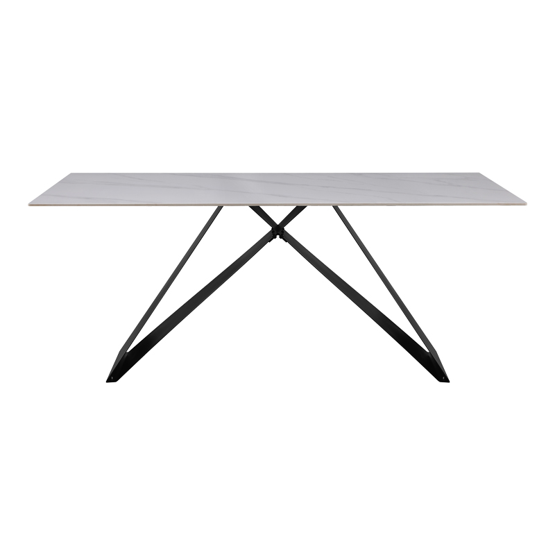 Τραπέζι Meja pakoworld Sintered stone λευκό με μεταλλικά πόδια σε μαύρη απόχρωση 180x90x76εκ Το τραπέζι Meja είναι ένα αριστούργημα του σύγχρονου σχεδιασμού, που συνδυάζει την κομψότητα της πυροσυσσωματωμένης πέτρας με την αισθητική του μετάλλου.Η διαδικασία σχηματισμού αυτής της ειδικής πέτρας δημιουργεί επιφάνειες με μοναδικό χαρακτηριστικό την όψη μαρμάρου όπου το καθιστούν το επίκεντρο σε κάθε χώρο, ενώ η αντοχή του εξασφαλίζει ότι θα σας συντροφεύει για μια ζωή. Τεχνικά χαρακτηριστικά : Επιφάνεια κατασκευασμένη από υψηλής ποιότητας Sintered stone 11mm με υψηλές αντοχές στις χαμηλές και στις υψηλές θερμοκρασίες. Το sintered stone (πυροσυσσωματωμένη πέτρα) είναι ένας σύγχρονος τύπος υλικού που χρησιμοποιείται ευρέως στον τομέα της κατασκευής και του design, είναι σκληρό, ανθεκτικό και ελαφρύ υλικό. Η επιφάνεια του είναι κατάλληλη για επαφή με τρόφιμα καθώς δεν απελευθερώνει επιβλαβείς ουσίες. Πόδια και σταθερή βάση από μέταλλο σε μαύρο χρώμα. Προσφέρεται σε χρώμα λευκό με όψη μαρμάρουΔιάσταση τραπεζιού: Μήκος: 180 εκ Πλάτος: 90 εκ Ύψος: 76 εκΠληροφορίες υλικών: Sintered Stone: Η πυροσυσσωματωμένη πέτρα (Sintered Stone) είναι ένα τεχνητό υλικό που κατασκευάζεται από την ανάμειξη φυσικών ορυκτών και πετρωμάτων, όπως χαλαζία, άστριο και αλουμίνιο, σε υψηλές θερμοκρασίες και πίεση. Αυτή η διαδικασία μίμησης της φυσικής γεωλογικής διαδικασίας λιθοποίησης, δημιουργεί ένα εξαιρετικά πυκνό, ανθεκτικό και μη πορώδες υλικό. Η ευελιξία της σε σχέδιο και εφαρμογές την καθιστά ιδανική για μια ποικιλία χρήσεων. Μέταλλο: Το μέταλλο χρησιμοποιείται ευρέως στην κατασκευή επίπλων, προσφέροντας μια σειρά από πλεονεκτήματα σε σχέση με άλλα υλικά. Είναι εξαιρετικά ανθεκτικό σε φθορές, ιδανικό για έπιπλα που προορίζονται για καθημερινή χρήση σε ένα απαιτητικό περιβάλλον. Διατηρεί το σχήμα και τη δομή του άψογα, εξασφαλίζοντας σταθερότητα και μακροζωία στα έπιπλα. Εκτός από τις ιδιότητες που αναφέρθηκαν παραπάνω, το μέταλλο μπορεί να έχει και άλλα χαρακτηριστικά, όπως η αντιμικροβιακή δράση (χαλκός) ή υπεραγωγιμότητα (μολυβδένιο).Οδηγίες συντήρησης: Sintered stone: Χρησιμοποιήστε ένα υγρό πανί ή σφουγγάρι με ζεστό νερό για να καθαρίσετε καθημερινά τις επιφάνειες από τη σκόνη και τους λεκέδες. Για την αφαίρεση επίμονων λεκέδων, χρησιμοποιήστε ήπια καθαριστικά με ουδέτερο pH. Αποφύγετε τα καθαριστικά που περιέχουν ισχυρά χημικά ή λειαντικα. Για λιπαρούς λεκέδες, ένα διάλυμα νερού και σαπουνιού είναι συνήθως αρκετό. Εάν χρειάζεται, μπορείτε να χρησιμοποιήσετε μια μικρή ποσότητα ισοπροπυλικής αλκοόλης (οινόπνευμα). Μέταλλο: Εάν πρόκειται για οποιοδήποτε μέταλλο εσωτερικού χώρου, ένα ξεσκόνισμα ή ένα καθάρισμα με υγρό πανί σε τακτά χρονικά διαστήματα είναι η ενδεδειγμένη επιλογή.Ωστόσο, εάν πρόκειται για μεταλλικά έπιπλα εξωτερικού χώρου, θα πρέπει να ακολουθήσετε τα παρακάτω βήματα: Για μεγαλύτερη διάρκεια προστασίας, περάστε τα μεταλλικά σας έπιπλα με προστατευτική κρέμα που μπορείτε να προμηθευτείτε εύκολα από εμπορικά καταστήματα. Εάν τα έπιπλά σας είναι επεξεργασμένα και βαμμένα με την μέθοδο του powder-coating (ηλεκτροστατική βαφή) τότε είναι πολύ ανθεκτικά και καθαρίζονται εύκολα με ένα υγρό πανί. Εάν τα μεταλλικά σας έπιπλα δεν έχουν ηλεκτροστατική βαφή, τότε θα πρέπει να τα προσέχετε περισσότερο και να τα κρατάτε μακριά από νερά και υγρασία. Μπορείτε να τα καλύψετε με ειδικά καλύμματα και τον χ