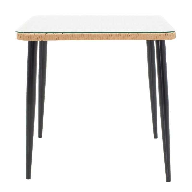 Τραπέζι Naoki pakoworld γυαλί-μέταλλο μαύρο-pe rattan σε φυσική απόχρωση 80x80x78εκ Τραπέζι Naoki pakoworld μέταλλο μαύρο-pe-φυσικό-γυαλί 80x80x78εκΓια εσάς που ψάχνετε ένα τραπέζι κήπου που να εντυπωσιάζει με την αισθητική και την ποιότητα κατασκευής του, η σειρά Naoki είναι η καλύτερη πρόταση αγοράς. Τεχνικά χαρακτηριστικά: Σταθερός σκελετός από εξαιρετικής ποιότητας μέταλλο (πόδια D50mm) με αντοχή στην καταπόνηση και στη φθορά. Κυρίως επιφάνεια τραπεζιού από PE rattan. Το PE rattan είναι ένα είδος οικολογικού συνθετικού rattan, ανακυκλώσιμο και με μεγαλύτερη ανθεκτικότητα σε σχέση με τα άλλα είδη. Γυαλί: tempered γυαλί 6χιλ – διάφανο. Μεγάλη ανθεκτικότητα: κατάλληλο για χρήση σε εξωτερικό χώρο εκτεθειμένο στις καιρικές συνθήκες και την υγρασία. Προσφέρεται σε χρώμα: Φυσικό – Μαύρο.Διάσταση προϊόντος: Μήκος: 80 εκ. Πλάτος: 80 εκ. Ύψος: 78 εκ.Πληροφορίες υλικών: PE Rattan: Είναι ένα δημοφιλές υλικό, απομίμηση φυσικού rattan, που χρησιμοποιείται στην κατασκευή επίπλων και αξεσουάρ. Κατασκευάζεται από πολυαιθυλένιο (polyethylene), το οποίο είναι μια ανθεκτική συνθετική πολυμερής ρητίνη. Είναι ανθεκτικό στις καιρικές συνθήκες, δεν φθείρεται από τον ήλιο ή τη βροχή και δεν ξεθωριάζει, ενώ παράλληλα είναι φιλικό προς το περιβάλλον. Tempered glass- Γυαλί ασφαλείας: Το tempered glass, γνωστό και ως σκληρυμένο ή θερμικά επεξεργασμένο γυαλί, είναι ένα είδος γυαλιού ασφαλείας που έχει υποστεί ειδική επεξεργασία για να αυξήσει την αντοχή του σε σύγκριση με το απλό γυαλί. Η διαδικασία θερμικής επεξεργασίας περιλαμβάνει τη θέρμανση του γυαλιού σε υψηλή θερμοκρασία και την απότομη ψύξη του. Αυτό δημιουργεί μια τάση συμπίεσης στην επιφάνεια του γυαλιού και μια τάση εφελκυσμού στο εσωτερικό, καθιστώντας το πιο ανθεκτικό σε κρούσεις, θερμικά σοκ και γρατζουνιές. Eίναι περίπου 5 φορές πιο ανθεκτικό από το απλό γυαλί σε κρούσεις. Ένα σημαντικό πλεονέκτημα είναι πως σε περίπτωση θραύσης, το tempered glass θρυμματίζεται σε μικρά, αμβλεία θραύσματα, μειώνοντας τον κίνδυνο σοβαρού τραυματισμού. Χρησιμοποιείται σε τραπέζια, γραφεία, έπιπλα τηλεόρασης κ.ά. Μέταλλο: Το μέταλλο χρησιμοποιείται ευρέως στην κατασκευή επίπλων, προσφέροντας μια σειρά από πλεονεκτήματα σε σχέση με άλλα υλικά. Είναι εξαιρετικά ανθεκτικό σε φθορές, ιδανικό για έπιπλα που προορίζονται για καθημερινή χρήση σε ένα απαιτητικό περιβάλλον. Διατηρεί το σχήμα και τη δομή του άψογα, εξασφαλίζοντας σταθερότητα και μακροζωία στα έπιπλα. Εκτός από τις ιδιότητες που αναφέρθηκαν παραπάνω, το μέταλλο μπορεί να έχει και άλλα χαρακτηριστικά, όπως η αντιμικροβιακή δράση (χαλκός) ή υπεραγωγιμότητα (μολυβδένιο).Οδηγίες συντήρησης: PE Rattan: Είναι εύκολο στη συντήρηση και τον καθαρισμό, απαιτεί απλό πλύσιμο με νερό και σαπούνι. Tempered glass: Αρχικά, χρησιμοποιήστε ένα απαλό υγρό πανί και ήπιο καθαριστικό ή απλά νερό. Απλώστε το πανί πάνω στο tempered glass και καθαρίστε το με ήπιες κυκλικές κινήσεις. Αποφύγετε την χρήση υπερβολικής πίεσης αλλά και υλικών που μπορεί να προκαλέσουν γρατζουνιές Μέταλλο: Εάν πρόκειται για οποιοδήποτε μέταλλο εσωτερικού χώρου, ένα ξεσκόνισμα ή ένα καθάρισμα με υγρό πανί σε τακτά χρονικά διαστήματα είναι η ενδεδειγμένη επιλογή. Ωστόσο, εάν πρόκειται για μεταλλικά έπιπλα εξωτερικού χώρου, θα πρέπει να ακολουθήσετε τα παρακάτω βήματα: Για μεγαλύτερη διάρκεια προστασίας, περάστε τα μεταλλικά σας έπιπλα με προστατευτική κρέμα που μπορείτε να προμηθευτείτε εύκολα α