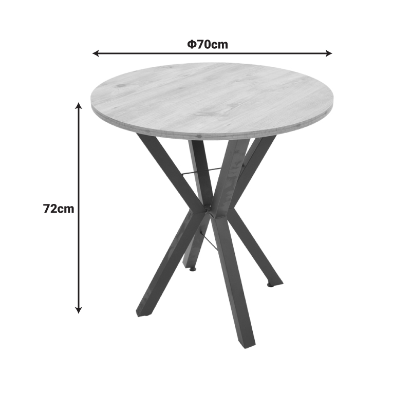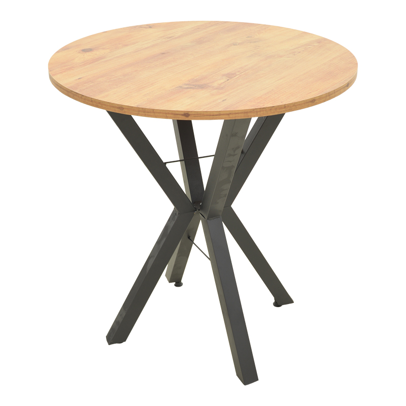 Τραπέζι Rogue pakoworld φυσική απόχρωση με μαύρα μεταλλικά πόδια Φ70×72εκ Ιδανικό για μικρούς χώρους, το μοντέρνο στρόγγυλο τραπέζι Rogue συνδυάζει την ανθεκτικότητα και το στυλ. Η επιφάνεια σε όψη ρουστίκ ξύλου και η κομψή μεταλλική βάση προσφέρουν μια λειτουργική και ταυτόχρονα εντυπωσιακή λύση για την κουζίνα ή και τον επαγγελματικό σας χώροΤεχνικά χαρακτηριστικά: Επιφάνεια Υψηλής Αισθητικής: Η επιφάνεια είναι κατασκευασμένη από μοριοσανίδα 1,8εκ με όψη ρουστίκ ξύλου σε φυσική απόχρωση. διαθέτει περιμετρικά ταινία PVC , η οποία προσφέρει προστασία από υγρασία, χτυπήματα και φθορά. Μεταλλική Βάση: Σε μαύρο χρώμα, εξασφαλίζει μέγιστη σταθερότητα και αφήνει ελεύθερο χώρο για τα πόδια. Ιδανικές Διαστάσεις για Μικρούς Χώρους: είναι η τέλεια λύση για να φιλοξενήσει 2 έως 4 άτομα χωρίς να καταλαμβάνει πολύτιμο χώρο.Διάσταση: Μήκος: 70 εκ. Πλάτος: 70 εκ. Ύψος: 72 εκ.Παρατηρήσεις: Το προϊόν παραδίδεται αμοντάριστο, σε εργοστασιακή συσκευασία και με αναλυτικό οδηγό συναρμολόγησης. Η χρωματική απόχρωση του προϊόντος ενδέχεται να διαφέρει ελαφρώς σε σχέση με την φωτογραφική απεικόνισή του στην οθόνη σας.