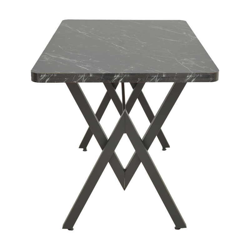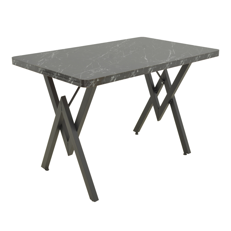 Τραπέζι Vertex pakoworld μαυρο εφέ μαρμάρου με μαύρα μεταλλικά πόδια 110x70x72εκ Ενσωματώστε το industrial chic στη διακόσμηση του χώρου σας με το εντυπωσιακό τραπέζι Vertex. Συνδυάζοντας την αυθεντική κομψότητα του εφέ μαρμάρου με την τολμηρή, γεωμετρική αισθητική του μαύρου μετάλλου, δημιουργεί ένα μοναδικό σημείο συνάντησης, ιδανικό για καθημερινά γεύματα και φιλοξενία.Τεχνικά χαρακτηριστικά: Επιφάνεια Υψηλής Αισθητικής: Η επιφάνεια κατασκευασμένη απο 3,6εκ μοριοσανίδας , προσφέρει πολυτελή υφή και χρώμα που προσδίδει κομψότητα και αντοχή στη φθορά. Βάση Industrial Design: Η ξεχωριστή μεταλλική βάση σε σχήμα από ανθεκτικό χάλυβα, σε μαύρο χρώμα, εξασφαλίζει άριστη σταθερότητα και αποτελεί το κεντρικό διακοσμητικό στοιχείο. είναι ιδανικό για να φιλοξενήσει άνετα 4 έως 6 άτομα, καθιστώντας το ιδανική λύση για τραπεζαρίες και κουζίνες. Ευέλικτη Χρήση: Ταιριάζει άψογα σε μοντέρνους, industrial, και minimal χώρους, ενώ μπορεί να χρησιμοποιηθεί ακόμη και ως γραφείο εργασίας με ξεχωριστό στυλ.Διάσταση: Μήκος: 110 εκ. Πλάτος: 70 εκ. Ύψος: 72 εκ.Παρατηρήσεις: Το προϊόν παραδίδεται αμοντάριστο, σε εργοστασιακή συσκευασία και με αναλυτικό οδηγό συναρμολόγησης. Η χρωματική απόχρωση του προϊόντος ενδέχεται να διαφέρει ελαφρώς σε σχέση με την φωτογραφική απεικόνισή του στην οθόνη σας.