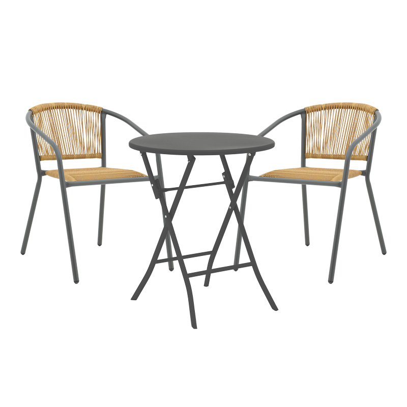 Τραπεζαρία Albero-Lindaria pakoworld πτυσσόμενη σετ 3τεμ μέταλλο σε ανθρακί απόχρωση Η τραπεζαρία Albero – Lindaria συνδυάζει λειτουργικότητα, στυλ και ποιότητα, προσφέροντας μια εξαιρετική λύση για τη διαμόρφωση του εξωτερικού σας χώρου . Aποτελεί μια εξαιρετική επιλογή για όσους αναζητούν ένα κομψό, άνετο και ανθεκτικό σύνολο για να απολαύσουν τις στιγμές τους, στο κήπο ή το μπαλκονι.Το σετ αποτελείται από 2 πολυθρόνες και 1 τραπέζιΤεχνικά χαρακτηριστικά τραπεζιου: Κατασκευασμένο από ανθεκτικό μέταλλο υψηλής αντοχής. Το προϊόν είναι κατάλληλο για εξωτερικούς χώρους. Είναι πτυσσόμενο: έχει την δυνατότητα να αναδιπλώνει και να κλείνει με μία κίνηση προσφέροντας έτσι ευκολία στη μεταφορά και την αποθήκευση. Προσφέρεται σε χρώμα ανθρακί.Διάσταση τραπεζιου Μήκος: 60 εκ. Πλάτος: 60 εκ. Ύψος: 70 εκ. Τεχνικά χαρακτηριστικά πολυθρόνας: Σταθερός σκελετός από εξαιρετικής ποιότητας μέταλλο (24×0.8mm) με αντοχή στην καταπόνηση και στη φθορά. Η πλάτη και η έδρα είναι κατασκευασμένες από pe rattan εξαιρετικής ποιότητας. Στοιβάζεται. Προσφέρεται σε ανθρακί χρώμα στο αλουμίνιο και φυσική απόχρωση το pe rattan.Διάσταση πολυθρόνας: Μήκος: 54 εκ. Πλάτος: 63 εκ. Ύψος: 74 εκ.Παρατηρήσεις: Το προϊόν παραδίδεται σε εργοστασιακή συσκευασία. Η χρωματική απόχρωση του προϊόντος ενδέχεται να διαφέρει ελαφρώς σε σχέση με την φωτογραφική απεικόνισή του στην οθόνη σας.