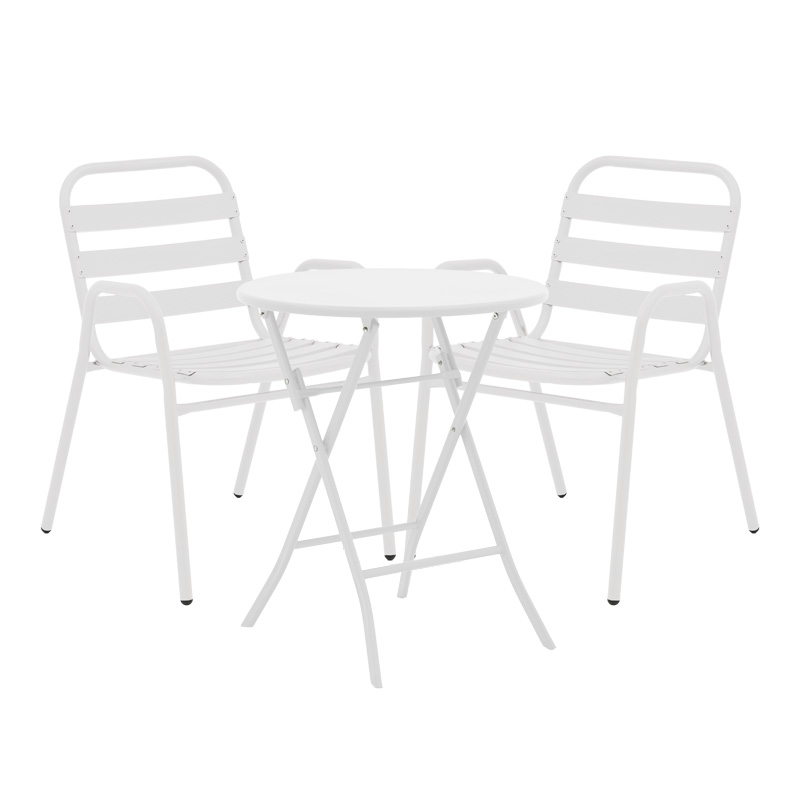 Τραπεζαρία Albero-Sussie pakoworld 3τεμ μέταλλο σε λευκή απόχρωση Φ60×70εκ Η τραπεζαρία Albero-Sussie συνδυάζει λειτουργικότητα, στυλ και ποιότητα, προσφέροντας μια εξαιρετική λύση για τη διαμόρφωση του εξωετρικού σας χώρου . Aποτελεί μια εξαιρετική επιλογή για όσους αναζητούν ένα κομψό, άνετο και ανθεκτικό σύνολο για να απολαύσουν τον καφέ ή το φαγητό τους, στον κήπο ή το μπαλκονι σας.Το σετ αποτελείται από 2 πολυθρόνες και 1 τραπέζιΤεχνικά χαρακτηριστικά τραπεζιού: Κατασκευασμένο από ανθεκτικό μέταλλο υψηλής αντοχής. Το προϊόν είναι κατάλληλο για εξωτερικούς χώρους. Είναι πτυσσόμενο: έχει την δυνατότητα να αναδιπλώνει και να κλείνει με μία κίνηση προσφέροντας έτσι ευκολία στη μεταφορά και την αποθήκευση. Προσφέρεται σε χρώμα λευκόΔιαστάσεις προϊόντος: Μήκος: 60 εκ Πλάτος: 60 εκ Ύψος: 70 εκΤεχνικά χαρακτηριστικά πολυθρόνας: Σταθερός σκελετός από μέταλλο εξαιρετικής ποιότητας με αντοχή σε φθορά και χρόνο, ενώ τα κομμάτια έδρας και πλάτης είναι κατασκευασμένα από φέτες αλουμινίου. Το μέταλλο παρέχει ανθεκτικότητα και σταθερότητα, ενώ οι φέτες αλουμινίου προσθέτουν ελαφρότητα και μια μοντέρνα αίσθηση στον σχεδιασμό. Η πολυθρόνα αυτή είναι ιδανική για χρήση σε εξωτερικούς χώρους, καθώς η ανθεκτικότητα στις καιρικές συνθήκες του αλουμινίου την καθιστά ανθεκτική σε έκθεση στον ήλιο και την υγρασία. Στοιβαζόμενη: προσφέρει ευκολία στη μεταφορά και την αποθήκευση. Προσφέρεται σε χρώμα λευκή. Μεγάλη ανθεκτικότητα: κατάλληλο για χρήση σε εξωτερικό χώρο εκτεθειμένο σε καιρικές συνθήκες κι υγρασία.Διαστάσεις προϊόντος: Μήκος: 45 εκ Πλάτος: 62 εκ Ύψος: 76 εκΠαρατηρήσεις: Το προϊόν παραδίδεται μονταρισμένο σε εργοστασιακή συσκευασία. Η χρωματική απόχρωση του προϊόντος ενδέχεται να διαφέρει ελαφρώς σε σχέση με την φωτογραφική απεικόνισή του στην οθόνη σας.