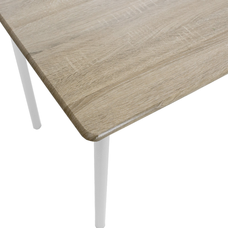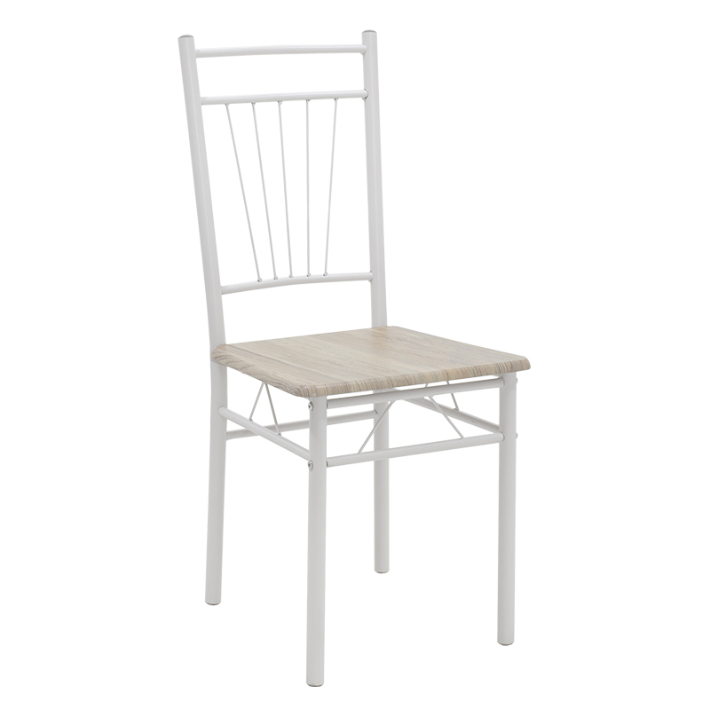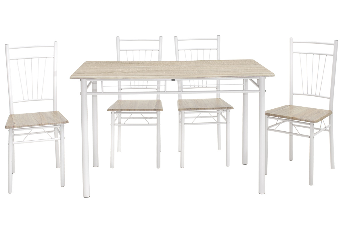 Τραπεζαρία Roza pakoworld σετ 5τμχ χρώμα sonoma – πόδια λευκό gloss 120x70x75εκ Tραπεζαρία Roza σετ 5τμχ χρώμα sonoma – πόδια λευκό gloss 120x70x75εκΓια εσάς που η τραπεζαρία αποτελεί το κέντρο του σπιτιού, όπου περνάτε πολλές ώρες της μέρας με τους φίλους και την οικογένεια σας.Για σας που χρειάζεστε ένα εύχρηστο και πρακτικό σετ τραπεζαρίας να καλύψει τις ανάγκες σας με μεγάλη ανθεκτικότητα και κλασσικό design. Τεχνικά χαρακτηριστικά: Επιφάνεια κατασκευασμένη από MDF με PVC σε απόχρωση ξύλου φυσικό (Sosona), υψηλής ποιότητας και με εξαιρετική αντοχή στον χρόνο. Στήριξη σε ενισχυμένο μεταλλικό σκελετό που καταλήγει σε τέσσερα στρόγγυλα μεταλλικά πόδια, ηλεκτροστατικής βαφής λευκό gloss χρώματος. Έχουν μεγάλη αντοχή σε χτυπήματα και εξαιρετική σταθερότητα. Οι καταλήξεις των ποδιών διαθέτουν προστατευτικά πλαστικά καλύμματα για την προστασία του πατώματος από ανεπιθύμητες φθορές.Διαστάσεις προϊόντος: Τραπεζιού: Μήκος: 120 εκ. Πλάτος: 70 εκ. Ύψος: 75εκ.Καρέκλας: Μήκος: 39 εκ. Πλάτος: 41 εκ. Ύψος: 90 εκ. Ύψος έδρας: 41 εκ.Πληροφορίες υλικών: MDF (Medium-density fibreboard/ινοσανίδα): Το MDF (Medium-density fibreboard/ινοσανίδα) είναι παράγωγο ξύλου. Για την παραγωγή του χρησιμοποιούνται ρητίνες (κόλλες) για την συγκόληση των ινών ξύλου οι οποίες συμπιέζονται με ειδικές θερμαινόμενες πρέσες. Είναι πιο πυκνό από την μοριοσανίδα (chipboard) και ανθεκτικό σε αντοχή. Επίσης, δεν απορροφά καθόλου υγρασία. PVC : Το PVC (Polyvinyl Chloride) είναι ένα πολυμερές πλαστικό. Είναι ανθεκτικό σε διάφορες συνθήκες, συμπεριλαμβανομένων της υγρασίας, της χημικής διάβρωσης και της φθοράς. Αυτή η ανθεκτικότητα το καθιστά κατάλληλο για εξωτερικές και εσωτερικές εφαρμογές. Το PVC είναι ανακυκλώσιμο και μπορεί να επαναχρησιμοποιηθεί για την παραγωγή νέων προϊόντων, μειώνοντας το περιβαλλοντικό αποτύπωμα.Οδηγίες συντήρησης: MDF: Για να το καθαρίσετε χρησιμοποιείστε ένα μαλακό στεγνό πανί ώστε να αφαιρέσετε σκόνη και βρωμιά. Για λεκέδες χρησιμοποιείστε ένα μαλακό πανί με χλιαρό νερό και ήπιο σαπούνι. Σκουπίστε απαλά την επιφάνεια μέχρι να αφαιρεθεί ο λεκές. Στο τέλος σκουπίστε καλά την επιφάνεια με ένα στεγνό πανί. Το MDF είναι ευαίσθητο στην υγρασία, επομένως είναι σημαντικό να το προστατεύετε από την υγρασία. Σκουπίστε τυχόν υγρά άμεσα. Μην χρησιμοποιείτε ισχυρά καθαριστικά ή χημικά, καθώς μπορεί να βλάψουν το MDF. PVC: Για τη συντήρησή του χρησιμοποιήστε ένα μαλακό πανί ή σφουγγάρι, ελαφρά εμποτισμένο με ήπιο απορρυπαντικό και ζεστό νερό. Απλώστε το πανί πάνω στην επιφάνεια του PVC καθαρίζοντας την περιοχή με ελαφριά πίεση. Αποφύγετε τη χρήση ισχυρών διαλυτικών ή χημικών, καθώς αυτά μπορεί να προκαλέσουν φθορά.Παρατηρήσεις: Το προϊόν παραδίδεται αμοντάριστο, σε εργοστασιακή συσκευασία και με αναλυτικό οδηγό συναρμολόγησης. Η χρωματική απόχρωση του προϊόντος ενδέχεται να διαφέρει ελαφρώς σε σχέση με την φωτογραφική απεικόνισή του στην οθόνη σας.