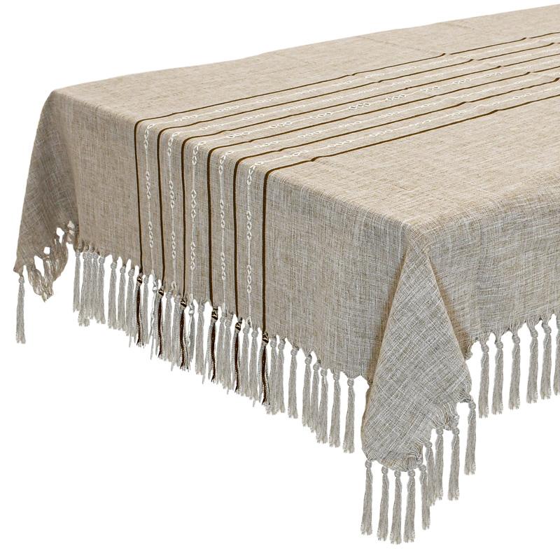 ΤΡΑΠΕΖΟΜΑΝΤΗΛΟ ΜΕ ΚΡΟΣΣΙΑ Fylliana ΜΠΕΖ-ΚΑΦΕ ΡΙΓΑ 135×135εκ