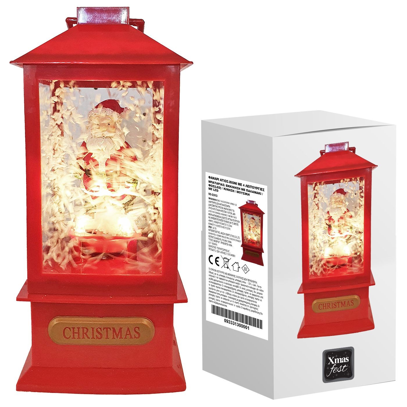 Φανάρι Άγιος-Χιόνι με 3 Λειτουργίες 20x9x9cm Xmasfest 1133333 Φανάρι μπαταρίας με 3 λειτουργίες: φως (LED), κίνηση, μουσική 20x9x9cm