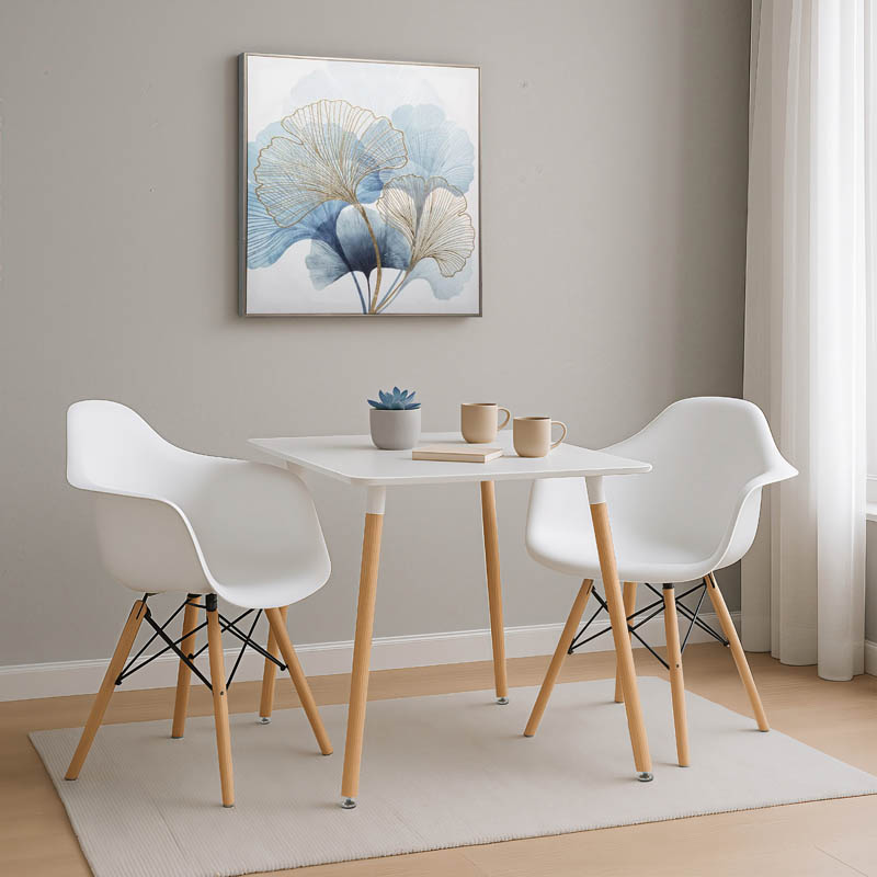 Φοιτητικό πακέτο επίπλων τραπεζαρίας New Salt & Pepper 4 pakoworld σετ 3 τμχ Φοιτητικό πακέτο επίπλων τραπεζαρίας Salt & Pepper 4 pakoworld σετ 3 τμχ Ένα ευέλικτο σετ τραπεζαρίας, προσαρμόσιμο σε μικρούς χώρους για σένα που κάνεις τα πρώτα σου βήματα στη φοιτητική ζωή. Επίλεξε την ποιότητα που θέλεις στη καλύτερη τιμή της αγοράς. Απλά με ένα click. Σετ τριών τεμαχίων: 1ο Τραπέζι Natali pakoworld επιφάνεια MDF λευκό 80x80x75εκΤεχνικά χαρακτηριστικά: * Επιφάνεια κατασκευασμένη από υψηλής ποιότητας MDF σε λευκό χρώμα που αφήνει μία σατινέ αίσθηση.* Στήριξη σε 4 ενισχυμένα ξύλινα πόδια οξιάς εξαιρετικής ποιότητας και αντοχής στο βάρος και στο χρόνο.* Οι καταλήξεις των ποδιών διαθέτουν προστατευτικά πέλματα για την προστασία του πατώματος από ανεπιθύμητες φθορές. Επίσης τα φέρουν την δυνατότητα περιστροφής και ρύθμισης του ύψους, ανάλογα με την κλίση του δαπέδου.Διάσταση: 80x80x75εκ ύψος2ο 2x Πολυθρόνα Julita pakoworld PP λευκό-φυσικό πόδιΤεχνικά χαρακτηριστικά:* Πλάτη και έδρα ενιαία, κατασκευασμένη από πολυπροπυλένιο 2850g/m³ με μεγάλη ανθεκτικότητα και αντοχές στη φθορά. Στηρίζει την σπονδυλική στήλη και τη μέση με μοντέρνο καμπύλο σχεδιασμό. Προσφέρεται σε λευκό χρώμα. * Στήριξη σε 4 ενισχυμένα ξύλινα μασίφ πόδια, ενοποιημένα με μεταλλικούς βραχίονες μαύρου χρώματος, εξαιρετικής ποιότητας και αντοχής στο βάρος και στο χρόνο. * Οι καταλήξεις των ποδιών διαθέτουν προστατευτικά πλαστικά καλύμματα για την προστασία του πατώματος από ανεπιθύμητες φθορές.Διάσταση προϊόντος:Μήκος: 62 εκ.Πλάτος: 60 εκ.Ύψος: 78,5 εκ.Ύψος έδρας: 46,5 εκΠαρατηρήσεις: Το προϊόν παραδίδεται αμοντάριστο στην εργοστασιακή του συσκευασία και συνοδεύεται με αναλυτικό οδηγό συναρμολόγησης. Η χρωματική απόχρωση του προϊόντος ενδέχεται να διαφέρει ελαφρώς σε σχέση με την φωτογραφική απεικόνισή του στην οθόνη σας.