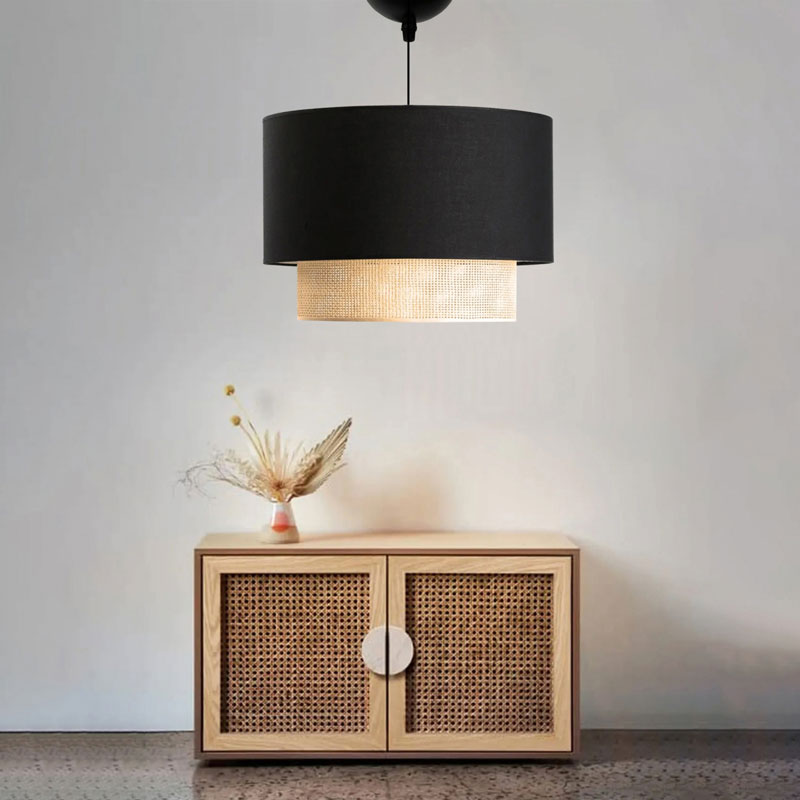 Φωτιστικό οροφής Fersa pakoworld μαύρο-φυσικό Φ30×20εκ Ένα φωτιστικό οροφής που θα αποτελέσει σημείο αναφοράς για τη διακόσμηση σας. Το Fersa συνδυάζει το κλασσικό με το σύγχρονο design.Τεχνικά χαρακτηριστικά:* Κατασκευή από ύφασμα και pp πολυπροπυλένιο ειδικά σχεδιασμένο για φωτιστικά αντοχής.* Ο σχεδιασμός του καπέλου επιτρέπει στο φως να διαχέεται εκπληκτικά όταν το φωτιστικό είναι σε λειτουργία.* Φέρει θέση για έναν λαμπτήρα Ε27, ο οποίος δεν συμπεριλαμβάνεται στη συσκευασία.* Προσφέρεται σε χρώμα μαύρο-φυσικό.Διαστάσεις προϊόντος:Μήκος: 30 εκΠλάτος: 30 εκΣυνολικό Ύψος: 70 εκΎψος καπέλου: 20εκΠαρατηρήσεις:Το προϊόν παραδίδεται σε εργοστασιακή συσκευασία. Η χρωματική απόχρωση του προϊόντος ενδέχεται να διαφέρει ελαφρώς σε σχέση με την φωτογραφική απεικόνισή του στην οθόνη σας.