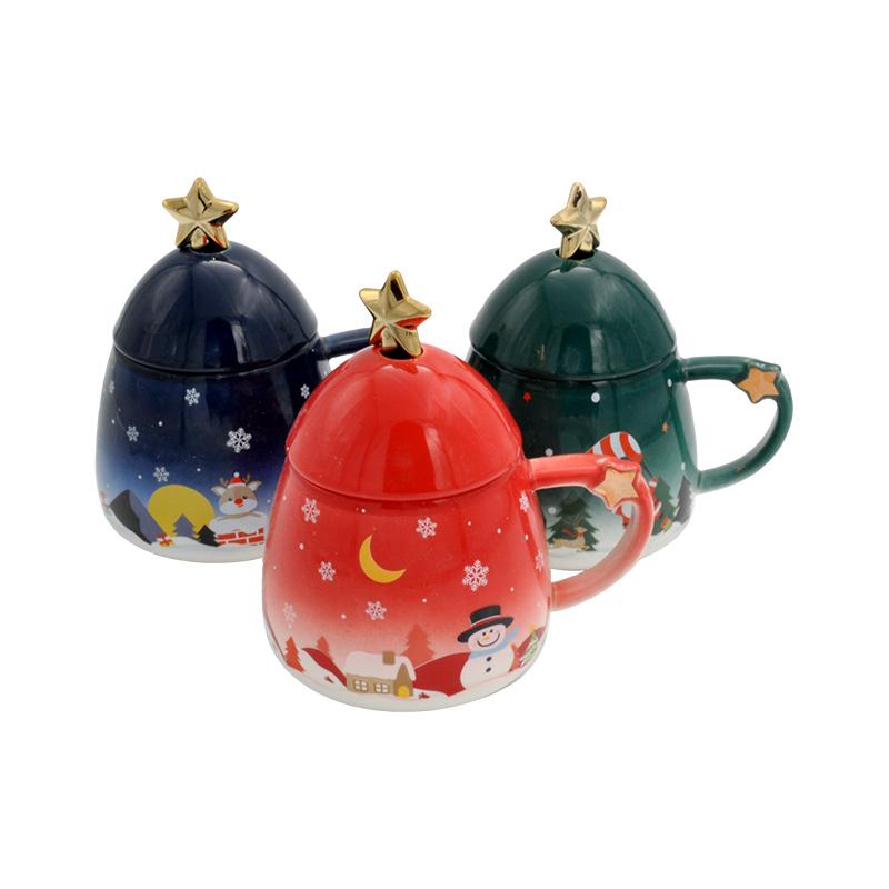 ΧΡΙΣΤΟΥΓΕΝΝΙΑΤΙΚΗ ΚΕΡΑΜΙΚΗ ΚΟΥΠΑ ME ΚΑΠΑΚΙ “TREE” 1/3 Fylliana FL822 ΜΠΛΕ ΠΡΑΣΙΝΟ ΚΟΚΚΙΝΟ 13×11εκ
