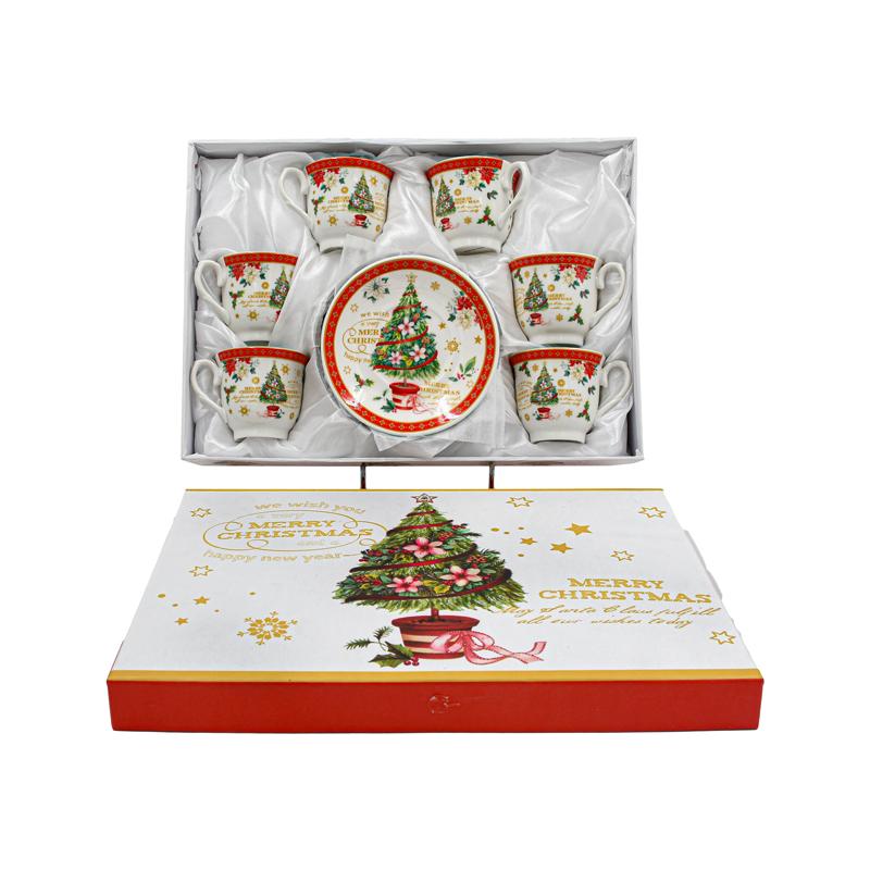 ΧΡΙΣΤΟΥΓΕΝΝΙΑΤΙΚΟ ΚΕΡΑΜΙΚO ΣΕΤ ΚΑΦΕ 6 ΤΕΜ ΣΕ ΚΟΥΤΙ Fylliana FL909017 ΛΕΥΚΟ-ΚΟΚΚΙΝΟ ΧΡΩΜΑ 6×6εκ