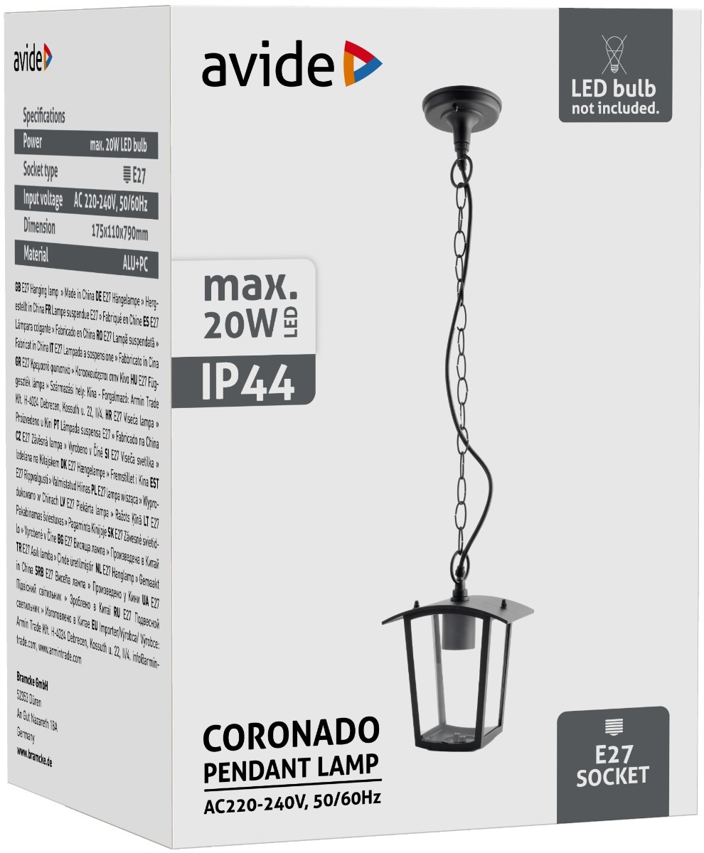 Ονομα : Avide Εξωτερικό Φωτιστικό Οροφής Coronado 1xE27 IP44 Μαύρο