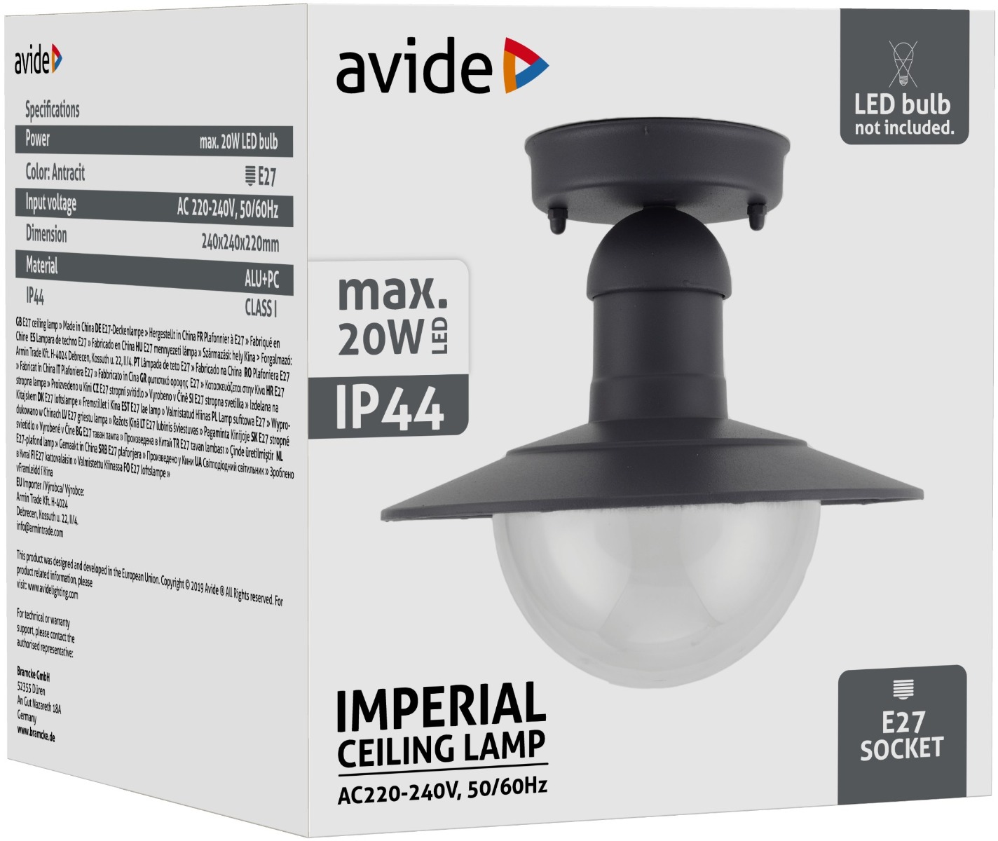 Ονομα : Avide Εξωτερικό Φωτιστικό Οροφής Imperial 1xE27 IP44 Ανθρακί