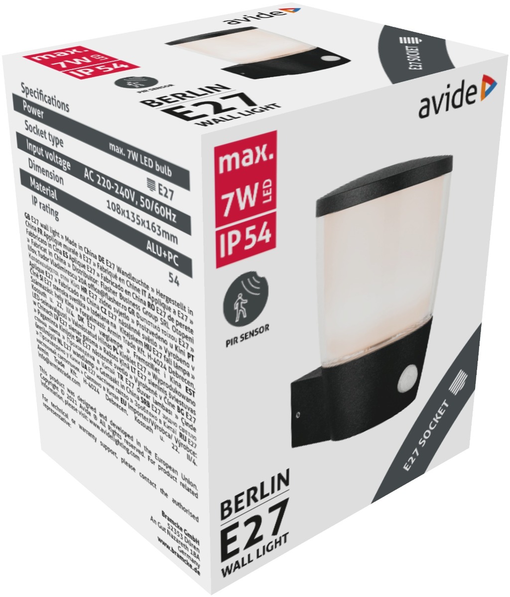 Ονομα : Avide Εξωτερικό Φωτιστικό Τοίχου Berlin 1xE27 IP54 με Αισθητήρα Κίνησης