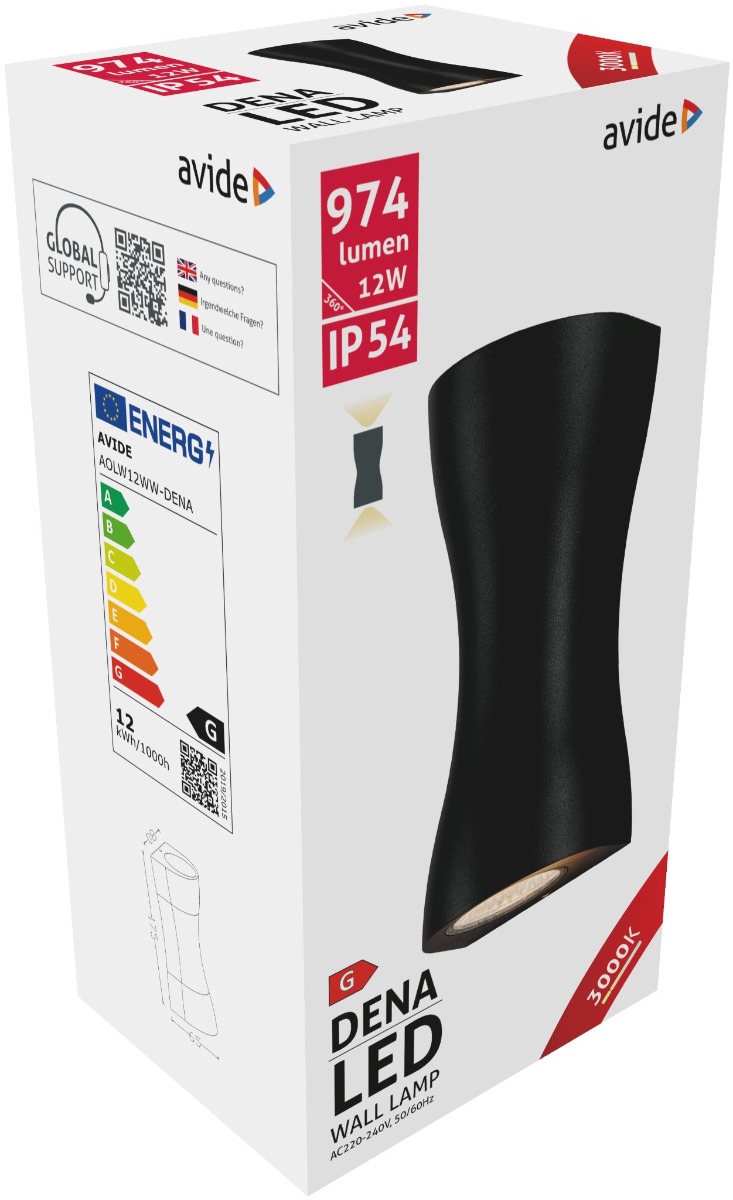 Ονομα : Avide Εξωτερικό Φωτιστικό Τοίχου Dena LED 12W Θερμό 3000K IP54