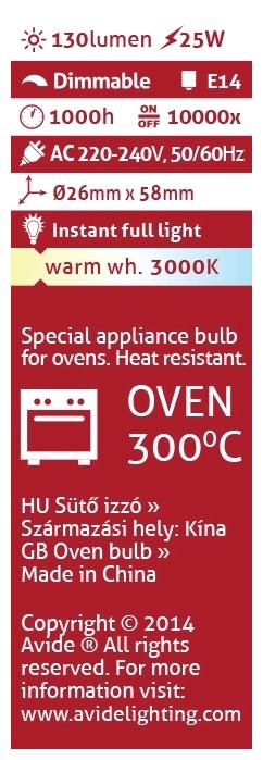 Ονομα : Avide Λάμπα Φούρνου 25W E14