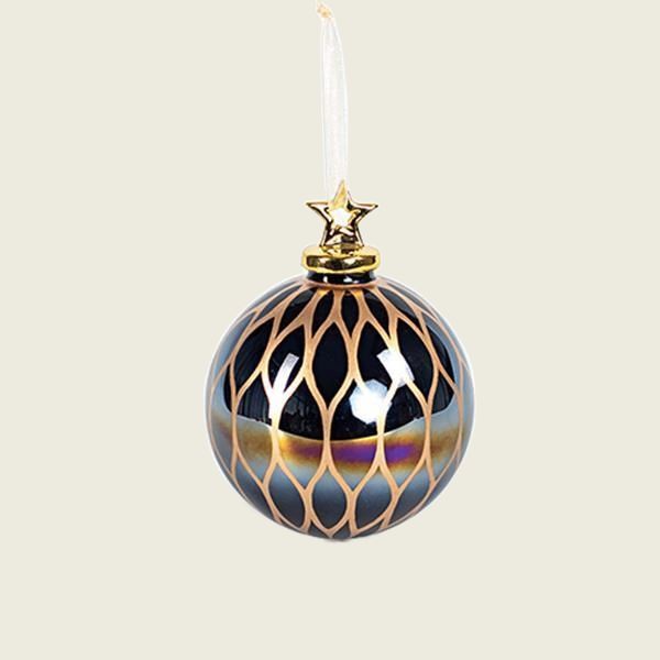 Beauty Home ΓΥΑΛΙΝΗ ΜΠΑΛΑ, ΙΡΙΔΙΖΟΥΣΑ ΜΑΥΡΗ ΜΕ ΠΟΡΣΕΛΑΝΙΝΟ ΑΣΤΕΡΙ ΚΑΙ ΧΡΥΣΑ ΣΧΕΔΙΑ, 1ΤΜΧ, 10cm