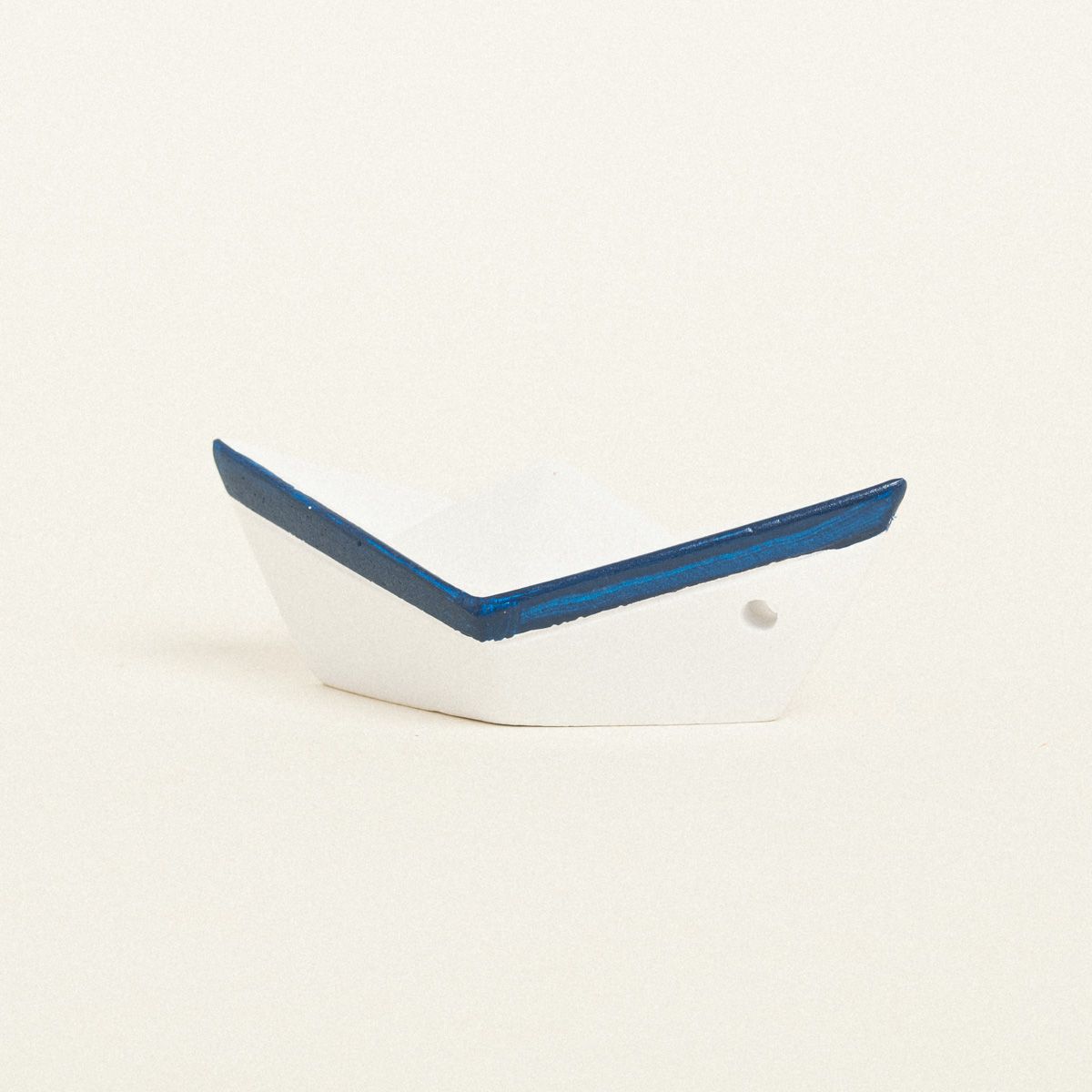 Beauty Home ΚΕΡΑΜΙΚΟ ΚΑΡΑΒΑΚΙ 7,5 x 3,5 x 3 cm ΛΕΥΚΟ / ΜΠΛΕ