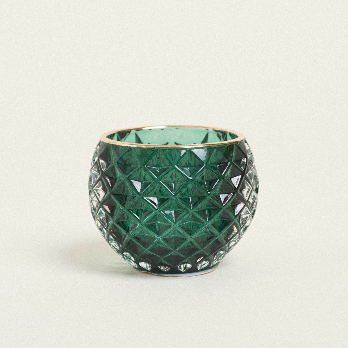 Beauty Home ΚΗΡΟΠΗΓΙΟ ΣΤΡΟΓΓΥΛΟ ΠΡΑΣΙΝΟ ΑΝΑΓΛΥΦΟ ΜΕ ΧΡΥΣΟ ΣΤΟΜΙΟ Ø7,8×6,2cm