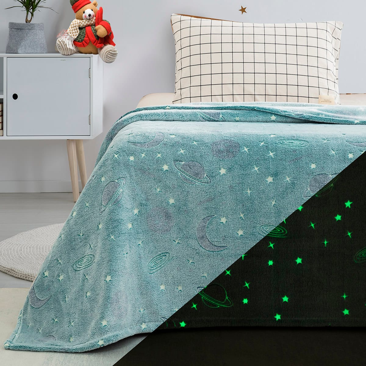 Beauty Home Κουβέρτα μονή φωσφορίζουσα Art 6256 160×220 Βεραμάν – Η νέα μας κουβέρτα Flash-Fleece κατασκευάζεται από μαλακό φλις και φωσφορίζει στο σκοτάδι για να σας παρέχει ζεστασιά και παιδικά γέλια κάθε βράδυ!
