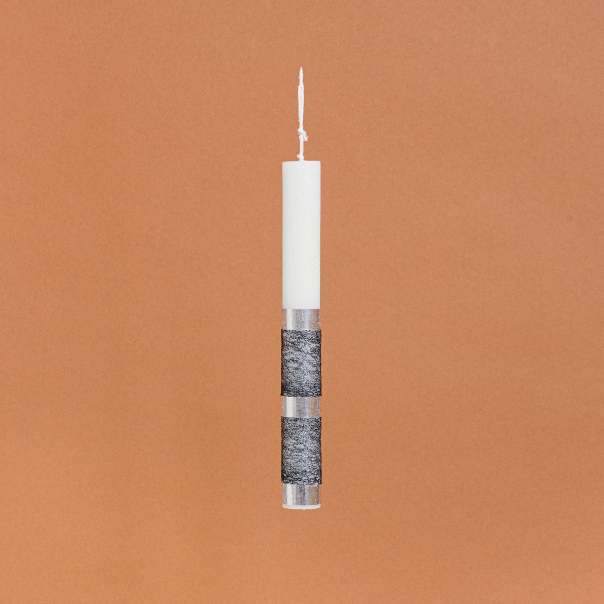 Beauty Home ΛΑΜΠΑΔΑ ΣΤΟΛΙΣΜΕΝΗ ΑΣΗΜΙ ΜΕ ΜΑΥΡΗ ΚΟΡΔΕΛΑ ΣΕ ΣΥΣΚΕΥΑΣΙΑ ΔΩΡΟΥ – 🕯️ Χειροποίητη Πασχαλινή Λαμπάδα σε Κουτί Δώρου 🎁