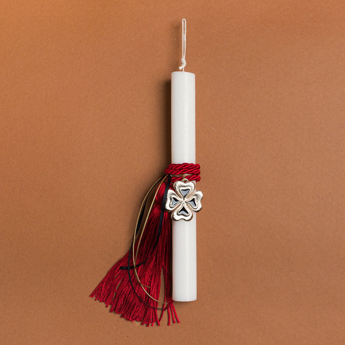 Beauty Home ΛΑΜΠΑΔΑ 33cm ΚΟΚΚΙΝΗ ΦΟΥΝΤΑ ΚΑΙ ΤΕΤΡΑΦΥΛΛΟ ΣΜΑΛΤΟ ΣΕ ΣΥΣΚΕΥΑΣΙΑ ΔΩΡΟΥ – 🕯️ **Χειροποίητη Πασχαλινή Λαμπάδα 33cm σε Κουτί Δώρου** 🎁