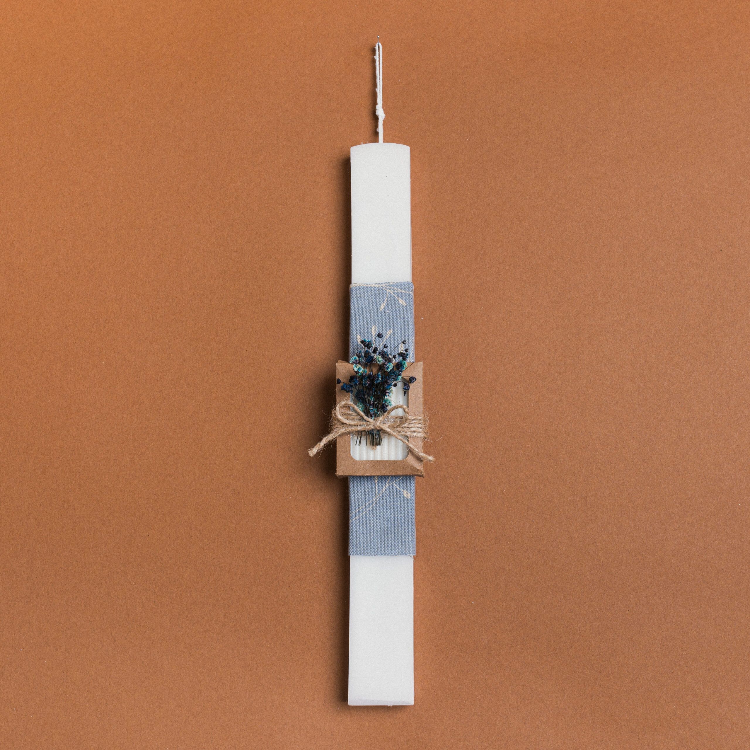 Beauty Home ΛΑΜΠΑΔΑ 33cm ΣΤΟΛΙΣΜΕΜΗ ΣΑΠΟΥΝΑΚΙ ΜΕ ΑΠΟΞΗΡΑΜΕΝΑ ΜΠΛΕ ΣΕ ΣΥΣΚΕΥΑΣΙΑ ΔΩΡΟΥ – 🕯️ **Χειροποίητη Πασχαλινή Λαμπάδα 33cm σε Κουτί Δώρου** 🎁